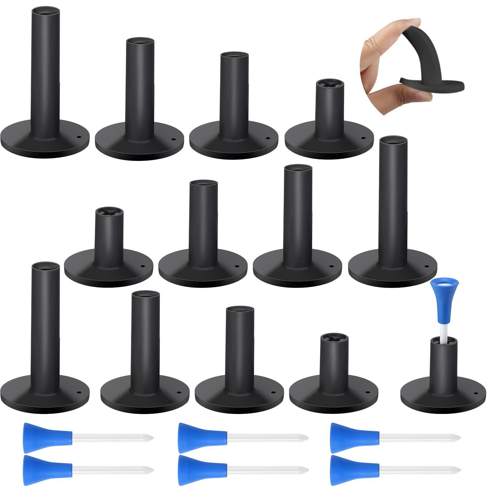 - Package includes: you will receive 12 pieces of black golf rubber tees holders with 6 pieces of plastic tees with blue and white, a total of 18 pieces, the mix size can meet your multiple purposes