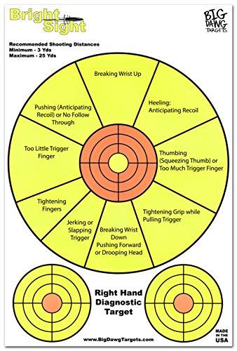 Bright Sight by Big Dawg Targets 12" x 18" - Fluorescent Pistol Right Hand Diagnostic Shooting Target - Bright Sight 25 Pack + 2 Free Splatter Targets