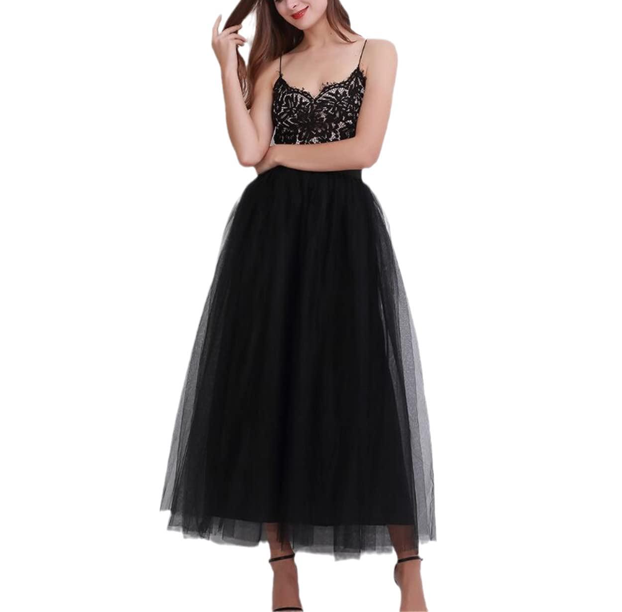 - FEATURES : Wedding party skirt Elastic waistband, if your waist is very thin, women skirt can make you look thinner. If you need a bigger waistline, it also stretches waistline. Long tulle skirt with elastic high waist.