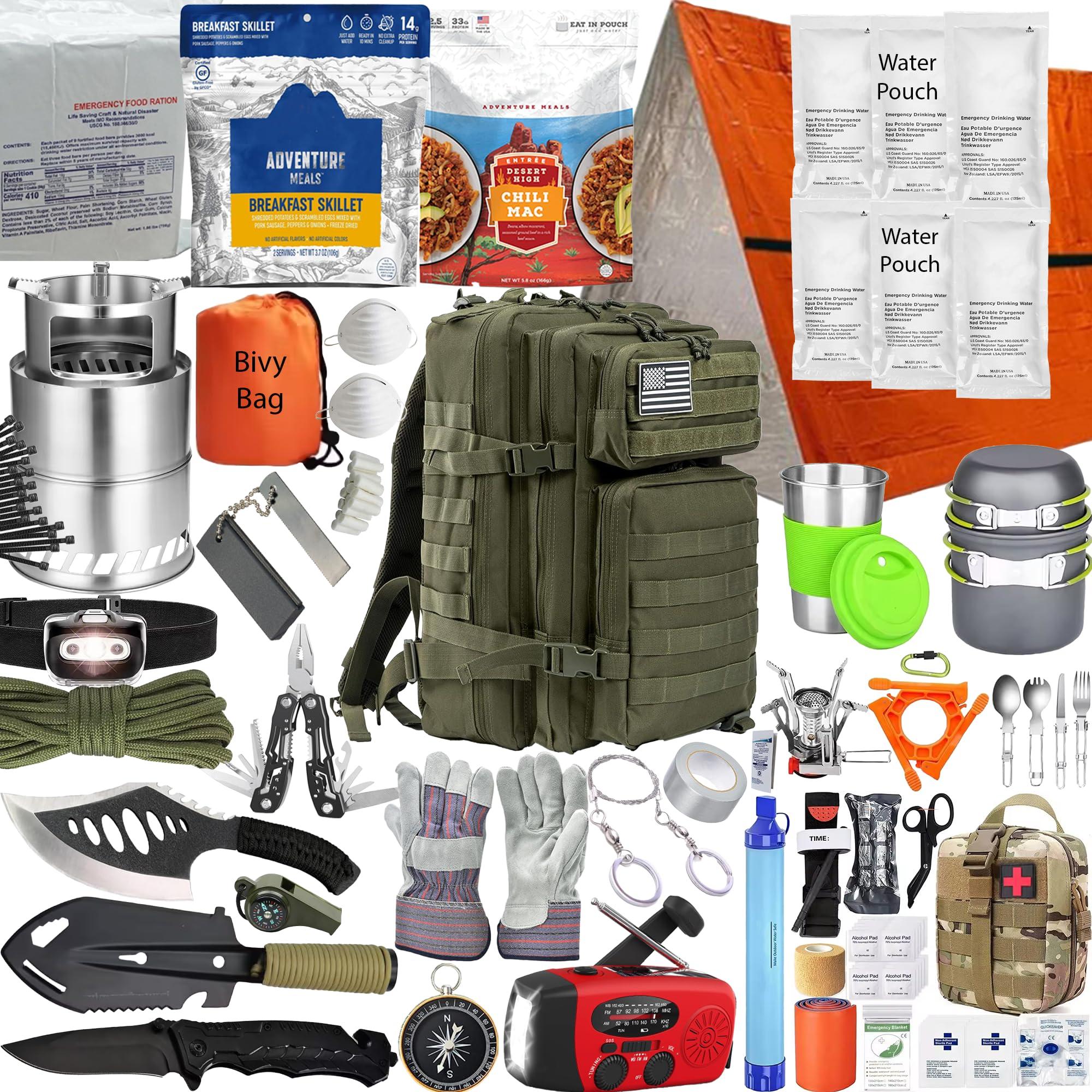 - SUSTENANCE & COOKING KIT: Includes portable cookware, and long-lasting food options. Granola and nutrient-dense food bars provide quick energy. Compact and lightweight for easy transport and storage.