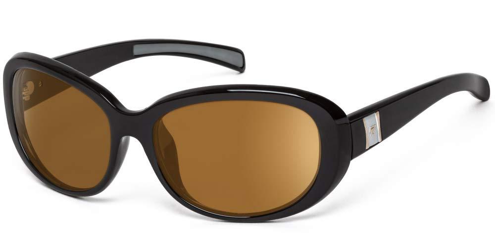 7eye by Panoptx Lindsay | Wind Blocking Sunglasses - Glossy Black, Polarized Copper Lenses
