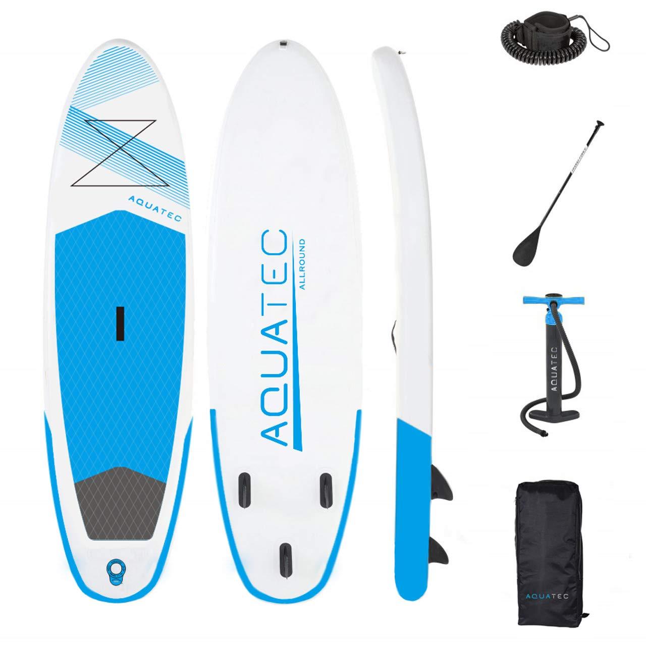 - COMPREHENSIVE PACK Each premium inflatable AquaTec Paddle Board is supplied with a PVC backpack, double action hand pump, an adjustable aluminium paddle, carry strap, coiled leash & a repair kit included as standard.