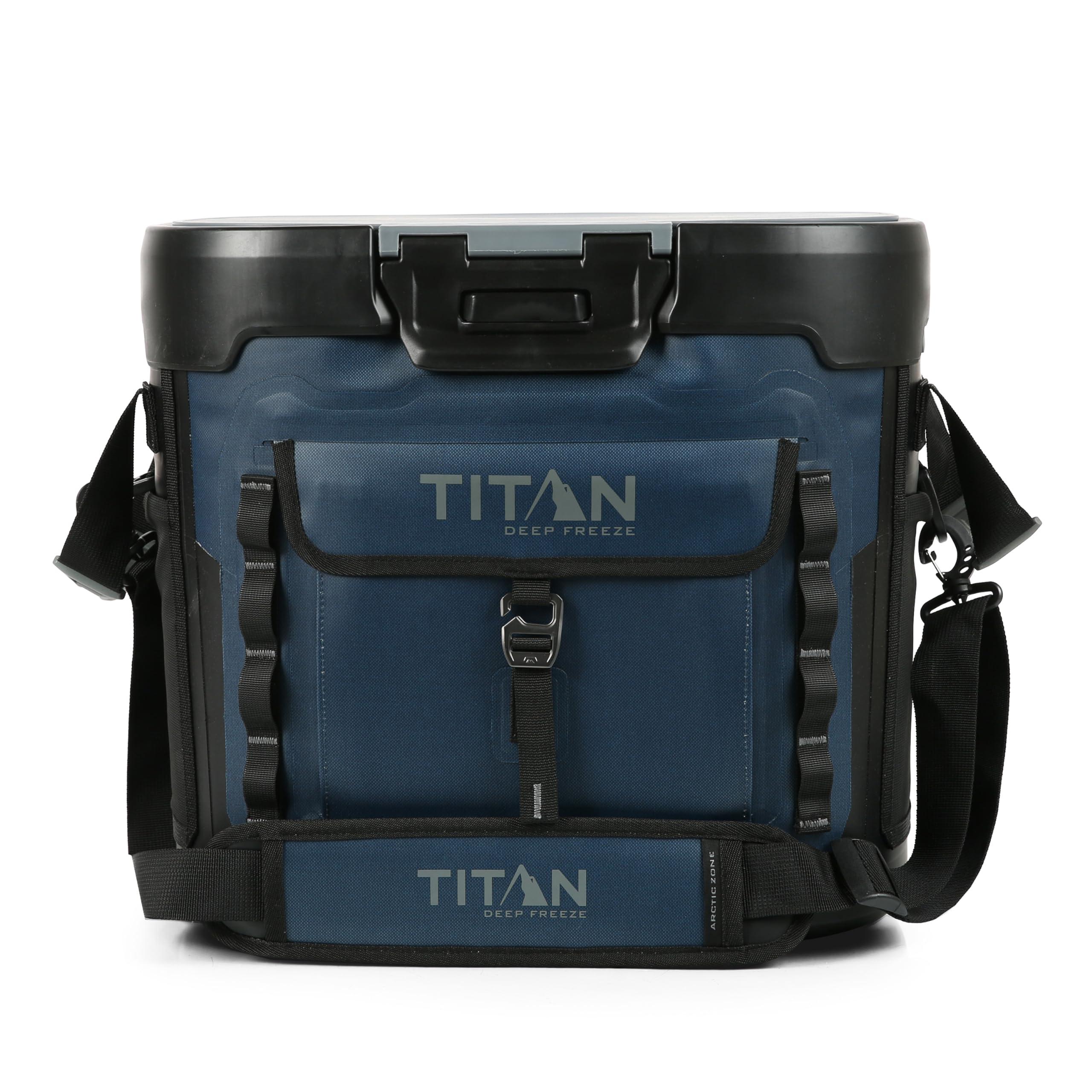 The Arctic Zone Titan Deep Freeze Zipperless Welded Cooler holds 36 cans and features a Zipperless lid for quick access to food and drinks. Deep Freeze Performance Insulation with an integrated radiant heat barrier provides longlasting cold and is perfect for storing ice for up to 3 and a half days. The cooler includes a removable HardBody Liner with SmartShelf that allows you to separate hard items from soft so that sandwiches and other soft foods don't get crushed. If you need more space, the SmartShelf easily removes to create one large compartment. Both the HardBody Liner and the SmartShelf have Microban technology to help protect against odors and stains and make them easier to clean. The cooler's exterior is waterproof, puncture and u.v. ray resistant and includes molded exterior carry handles and a removable, adjustable shoulder strap with shoulder pad. This cooler was designed to take whatever you can throw at it! Perfect for camping, hiking, fishing, and boating.