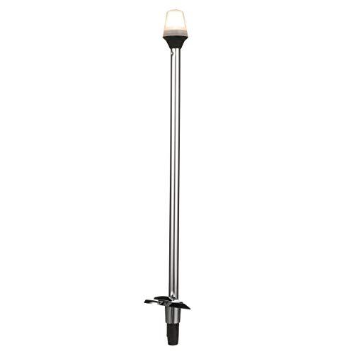 Swivel cover on base protects the base socket when light is stowed away. Base extends just 3" below deck. 4"-long x 1-5/8"-wide x 1-3/8"-dia. Provides 2-mile 360 Degree illumination for boats up to 65.6' (20m). Includes 911339 base and 9-watt wedge base lamp. Three countersunk holes for #10 fasteners.