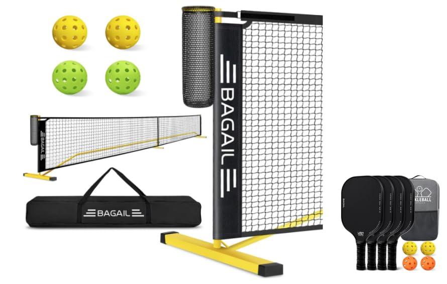 - BAGAIL Portable Pickleball Net Set with Wheels+ 2 Pack Pickleball Paddles 22 FT Regulation Size & 11 FT Half Court Size 2-in-1 Pickle Ball Net with Ball Collector