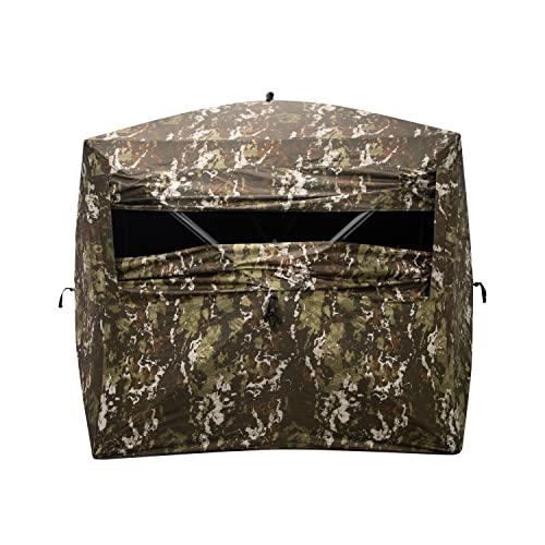 - Rectangular design allows two hunters to sit side by side while watching through the same window