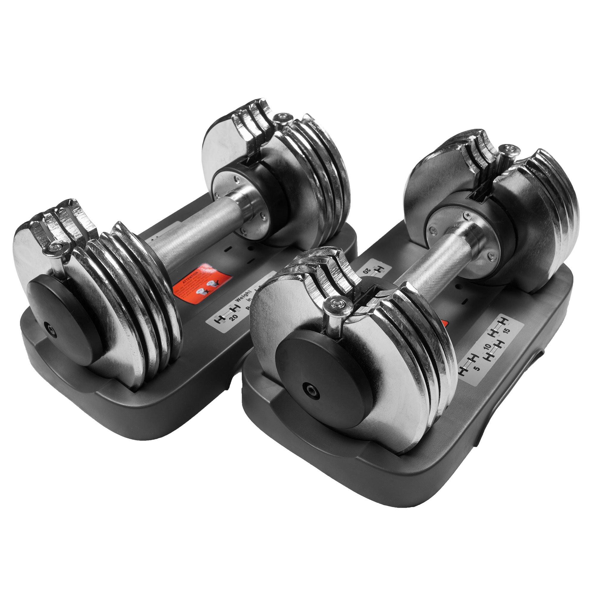 - Replacing five pair of traditional hex dumbbells, the 25lb pair of adjustable weight dumbbells offers the best bang for your buck. Weight increments: 5 lb, 10 lb, 15 lb, 20 lb, and 25 lb.