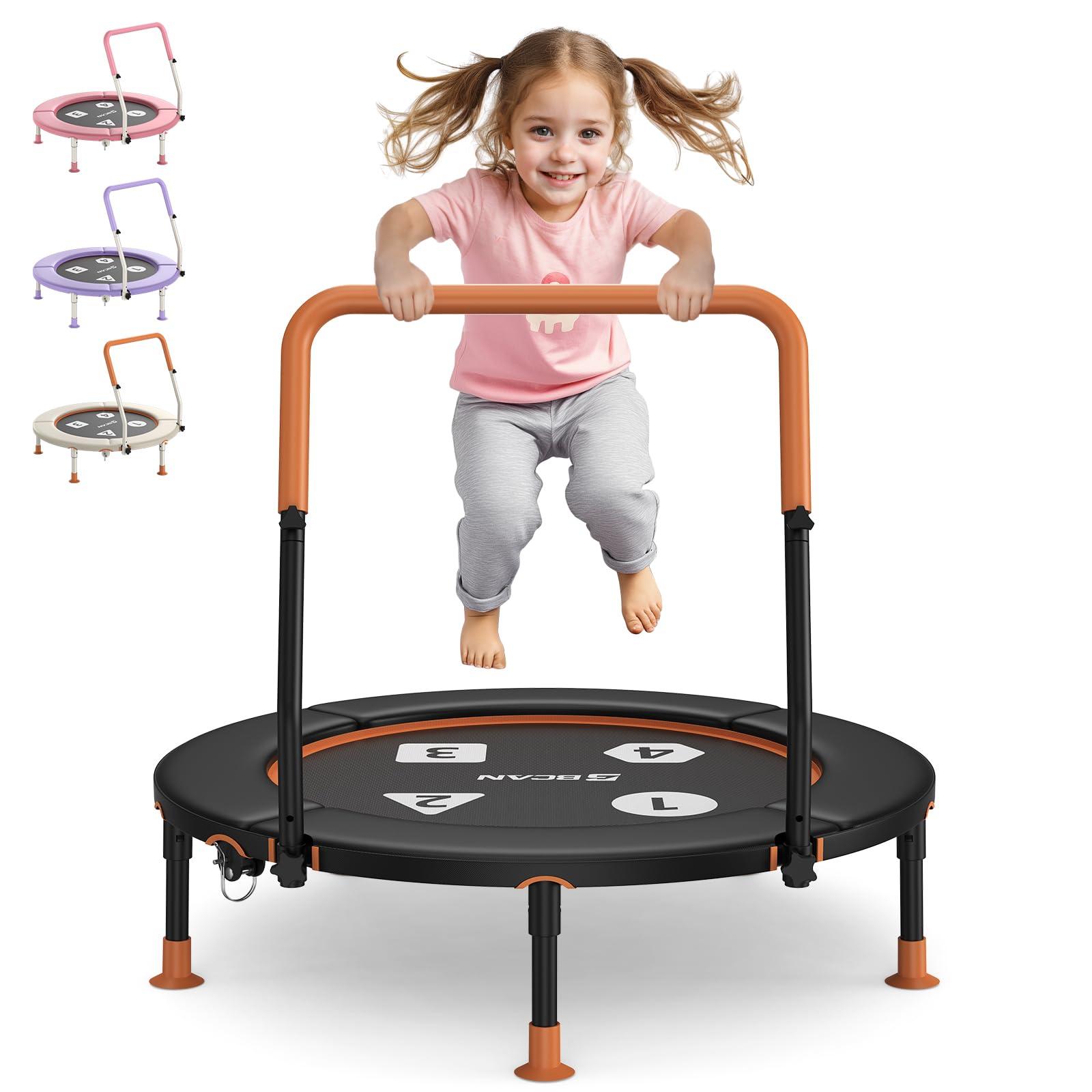 - Thicken Foam Adjustable Handle: Designed with 2-level adjustable handle, this small trampoline is suitable for kids ages 1-6. The thicken foam padding ensures a comfortable and secure grip while jumping