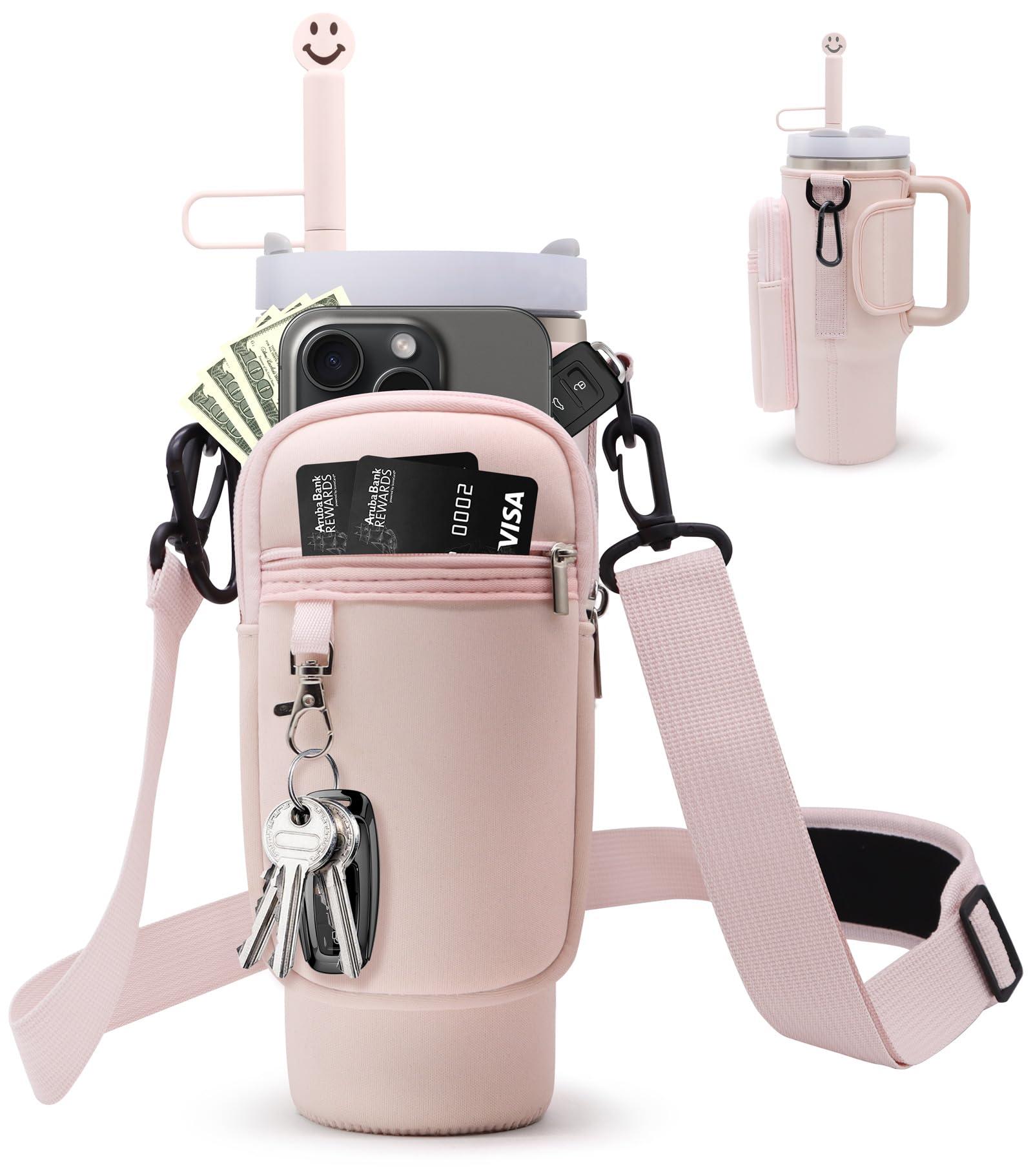 - Adjustable Strap & Convenient PocketsFor Stanley 40 oz Cup sleeve comes with a removable and adjustable shoulder strap is soft and padded, allowing for easy adjustment between 27.5 in and 50 in to fit most body sizes. Two front pocket designs that provide plenty of room for all your personal belongings such as smartphones, cash, cards,keys,etc.