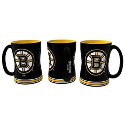 The sculpted coffee mug is decorated with your team's bright and colorful graphics. The team logo is on both sides, and is slightly raised. The mug also features the team's name on the handle and is made of ceramic. It holds 14 ounces of fluid and is microwave & dishwasher safe. Approximately 4.5" tall. Made By Boelter Brands
