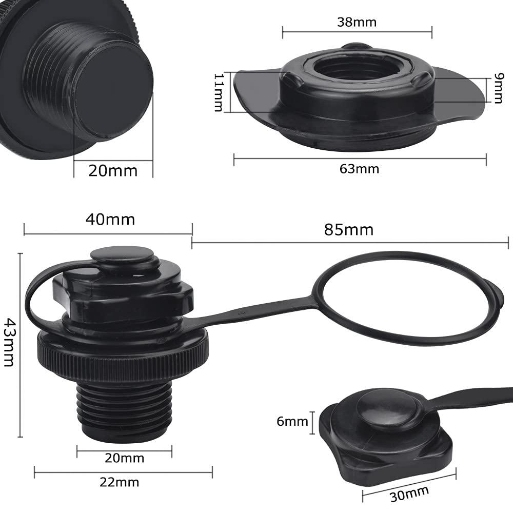 - Cap Desgin:The air valve cap design is sealed ensures anti-leak inflation. The upside diameter/length of Threaded part is 22mm (out)/ 17mm(inner), the underside diameter/length of Threaded part is 22mm (out)/ 20mm(inner) .Please check size to make sure whether your valve bung fit this plug before purchase.