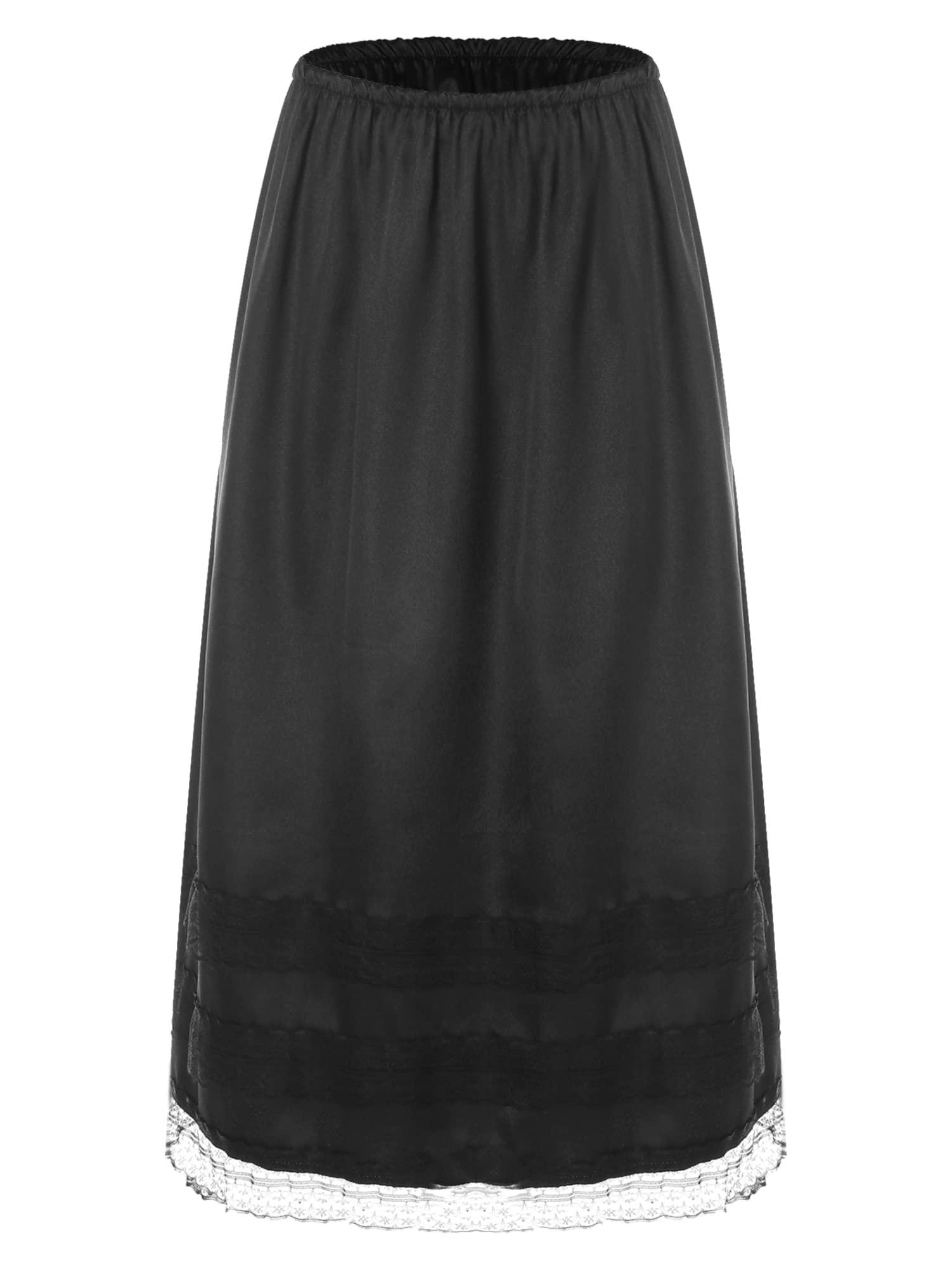 - Womens half slip safety long underskirt elastic waist lace trim tea length single layer petticoat for under dresses