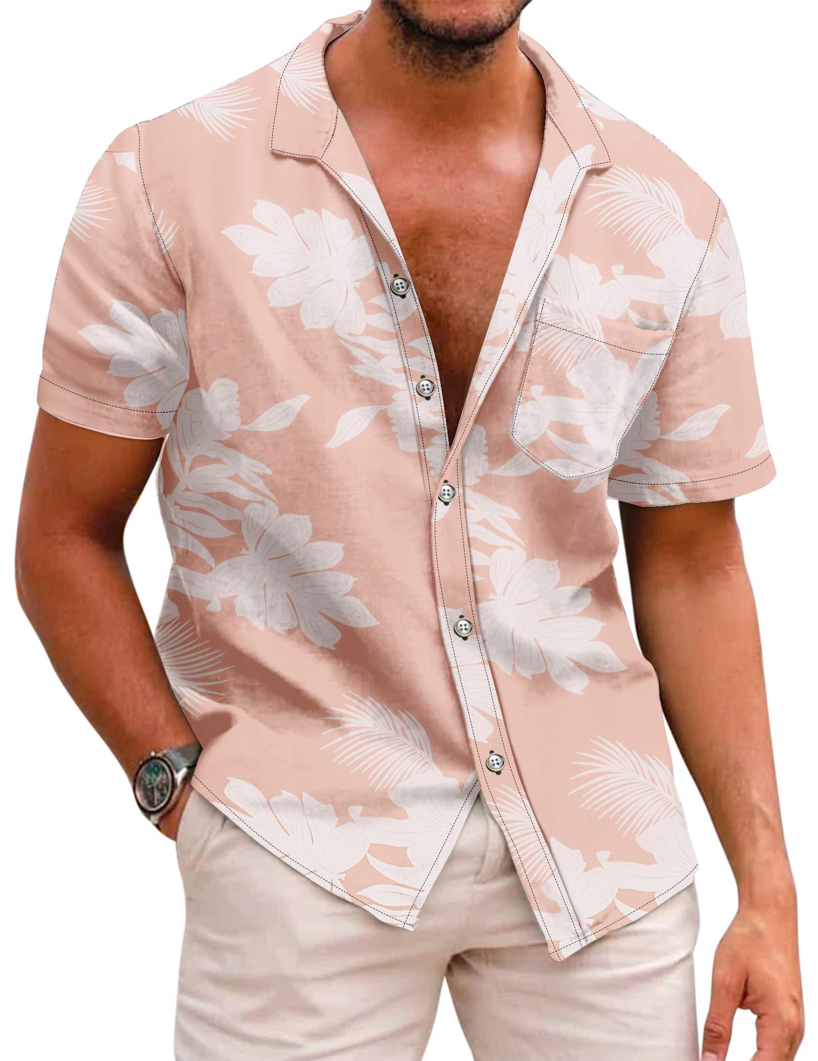 - HAWAIIAN PRINT STYLEThe summer hawaiian shirt features with a tropical floral print, all over printing which brings you striking looking, vibrant prints add tropical appeal to this men cotton aloha shirts.