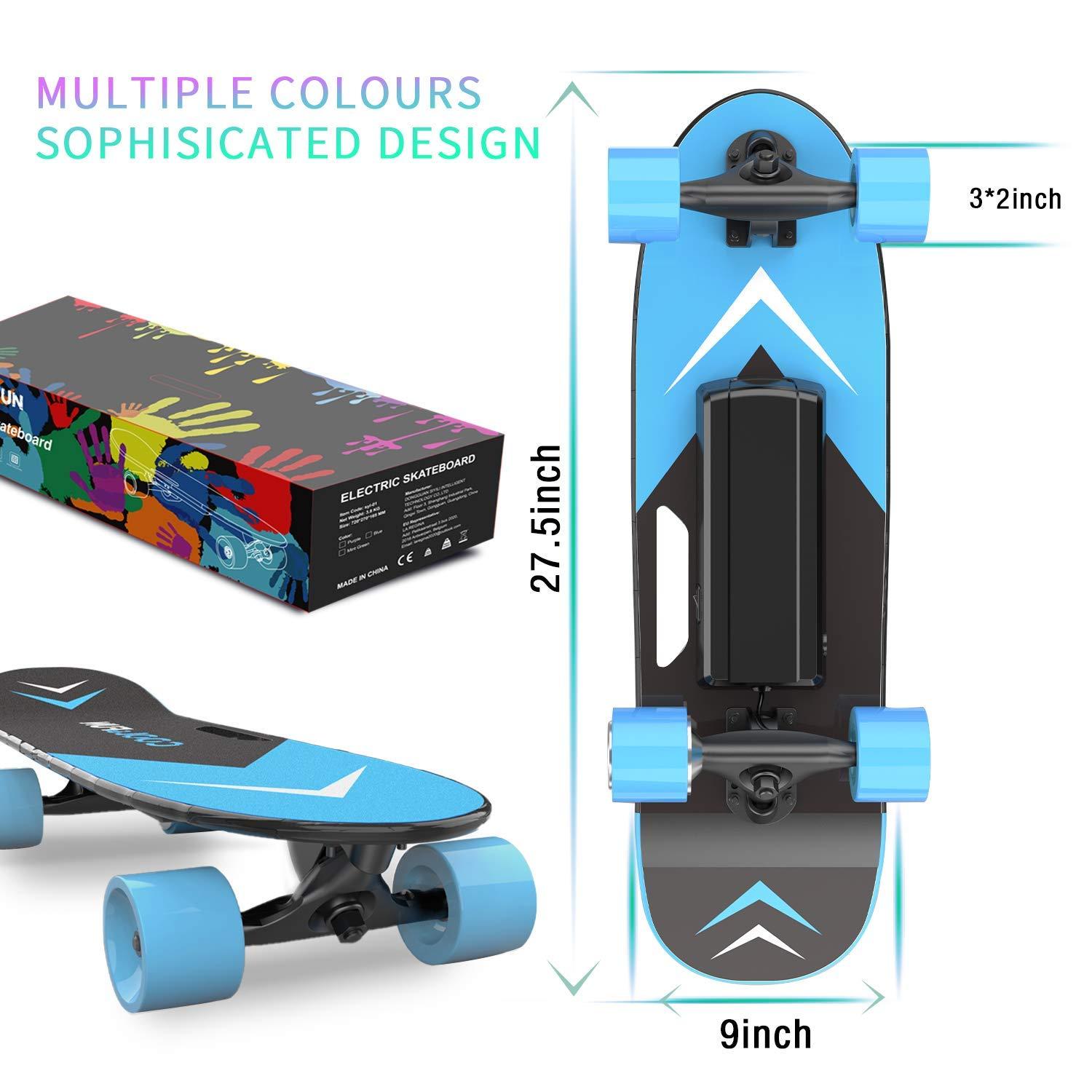 Cool&Fun Electric Skateboard, Brushless Motor Electric Skateboard with Remote, 10MPH Top Speed, 7 Miles Range, 3 Speeds Adjustment, Max Load up to 200 Lbs, Electric Skateboard for Adults (Blue)