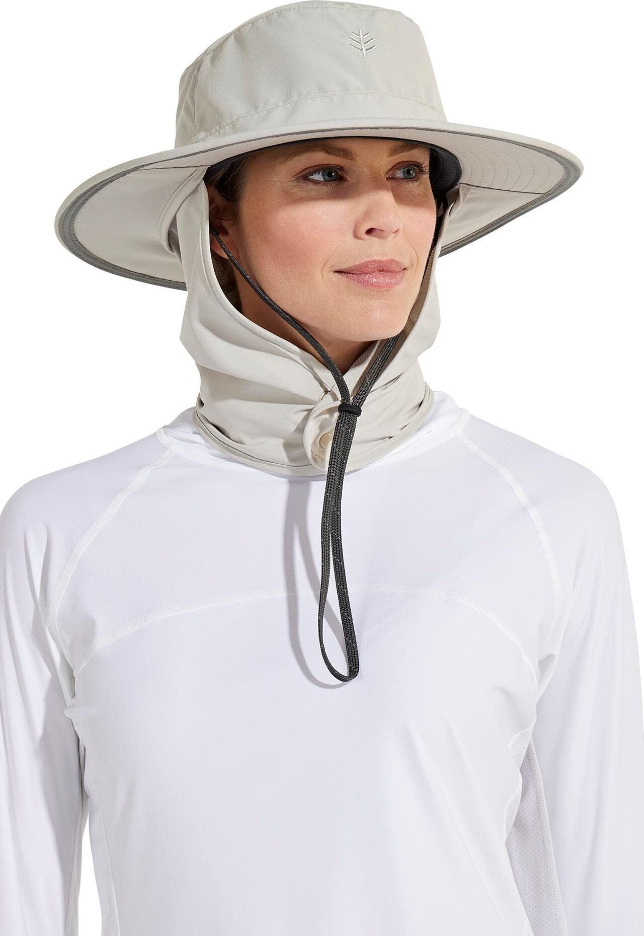 - FABRIC: Travel friendly, crushable and packable; Internal cooling mesh sweatband, covered mesh panel on back crown for ventilation, neck drape folds into back under brim and snaps in place, elastic cord and toggle at back for adjustability