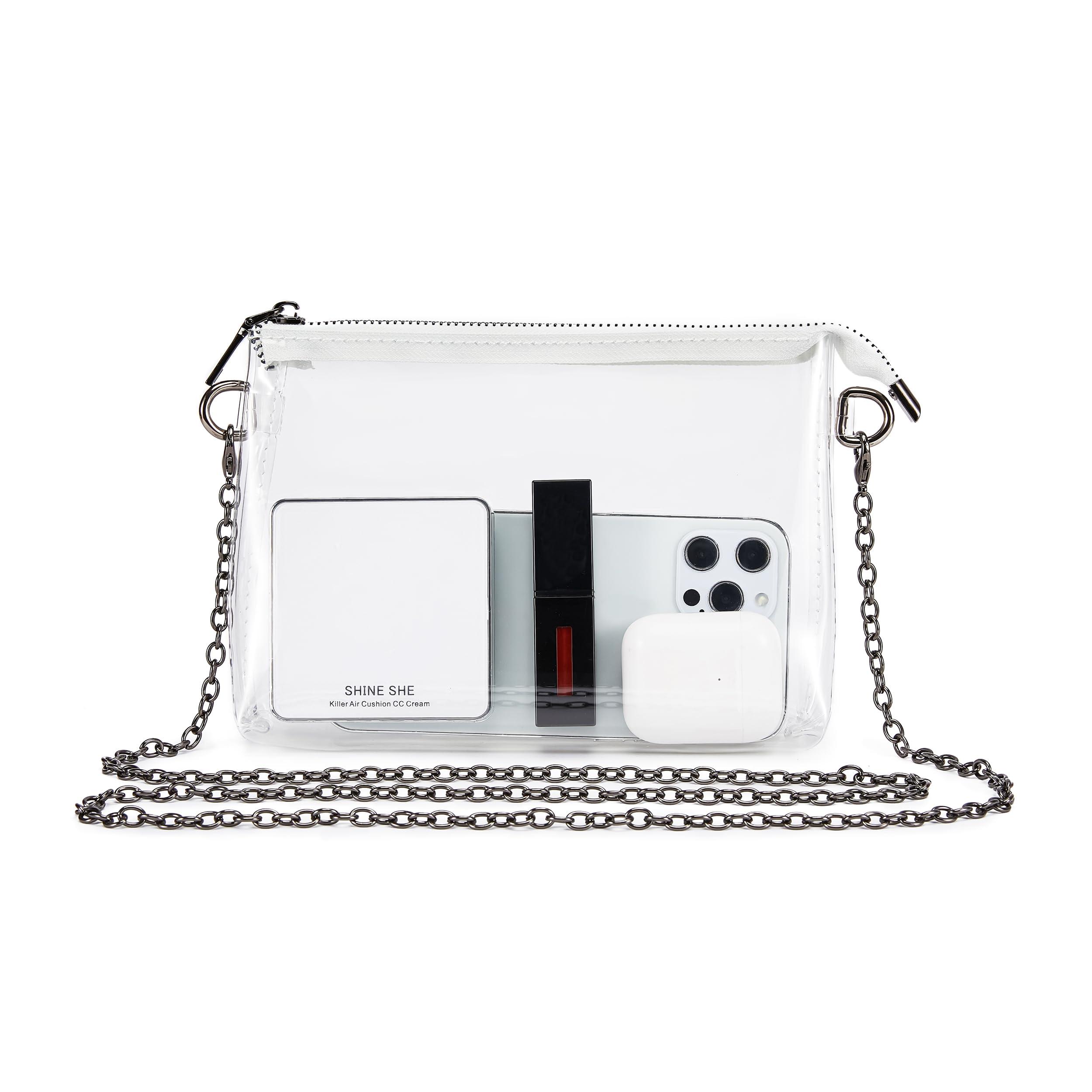 - ADJUSTABLE REMOVABLE CHAIN: The clear bag adjust the length by snapping the chain or passing the chain through the hole twice, carry it as a handbag, shoulder bag or crossbody bag to suit various event and outfit.