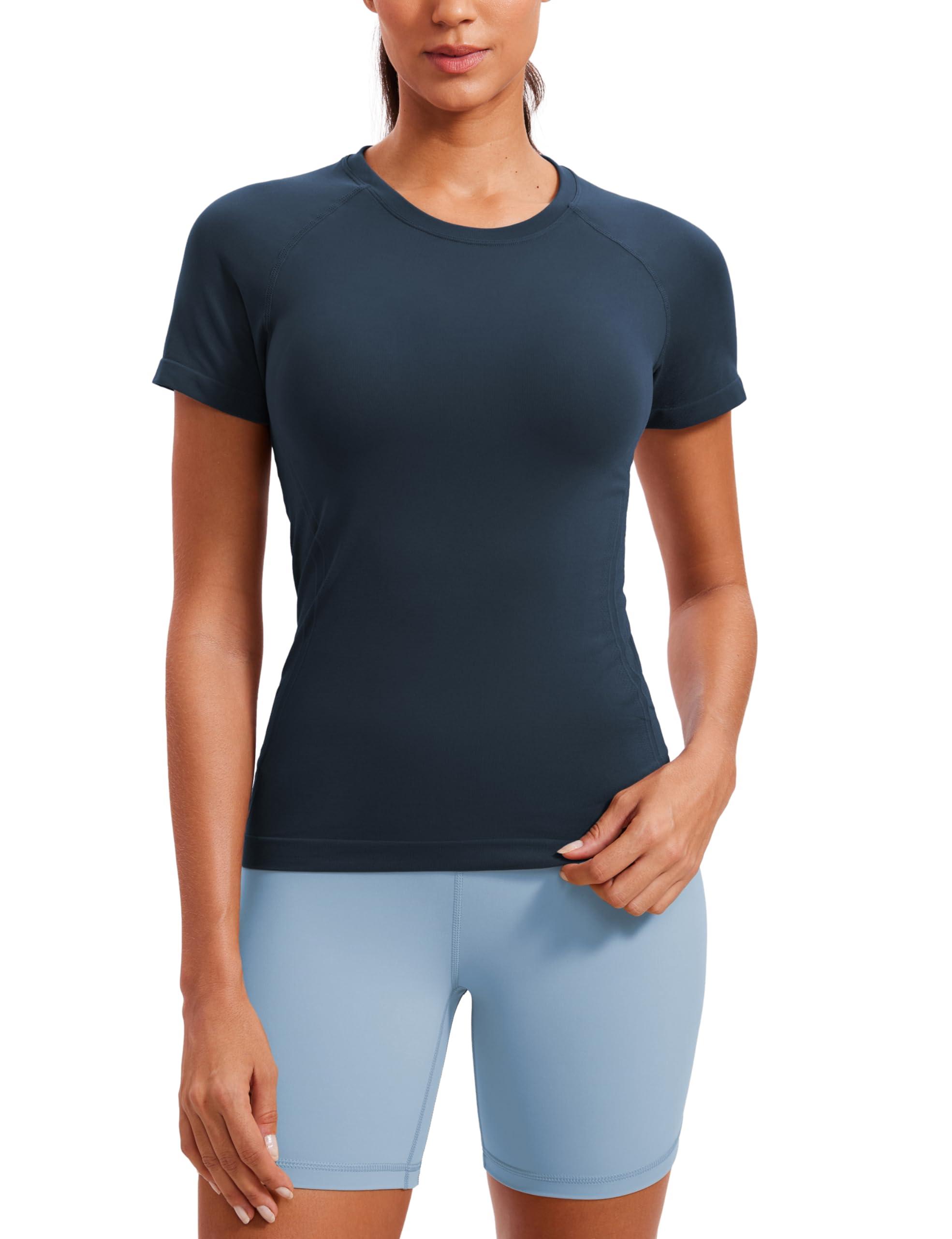 Seamless collection of smooth, soft knit fabric is designed to help reduce chafing and quick drying. Athletic crew neck and raglan sleeve allow for moving freely. Breathable mesh in sweaty areas keeps you cool all the time.