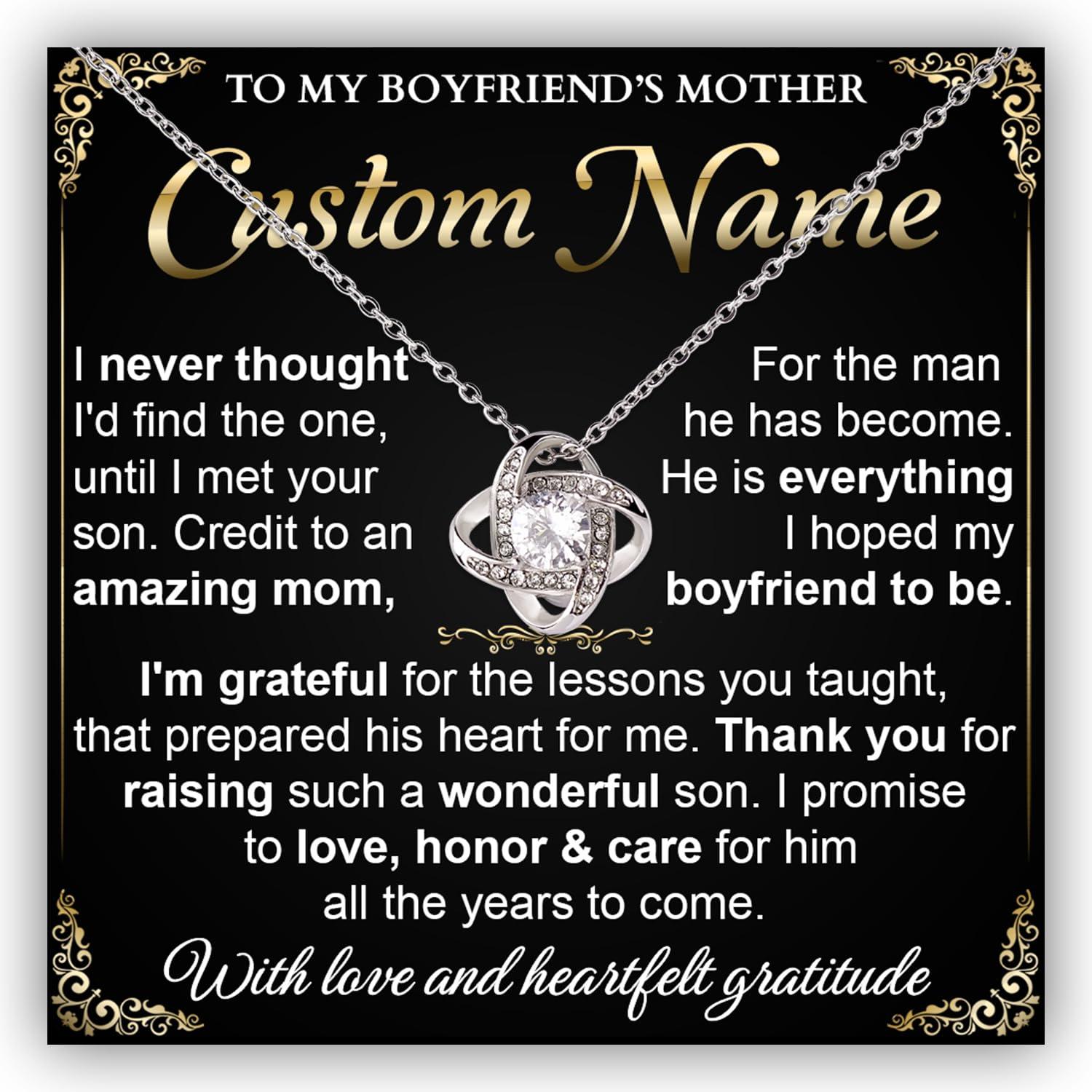 - Necklace Gifts To My Boyfriends Mom: Show your boyfriend's mom how much you love her in your life with this delicate necklace. Bringing a deep impression to your boyfriend's mom. When she wears this love knot necklace. She'll be reminded of your love every day.