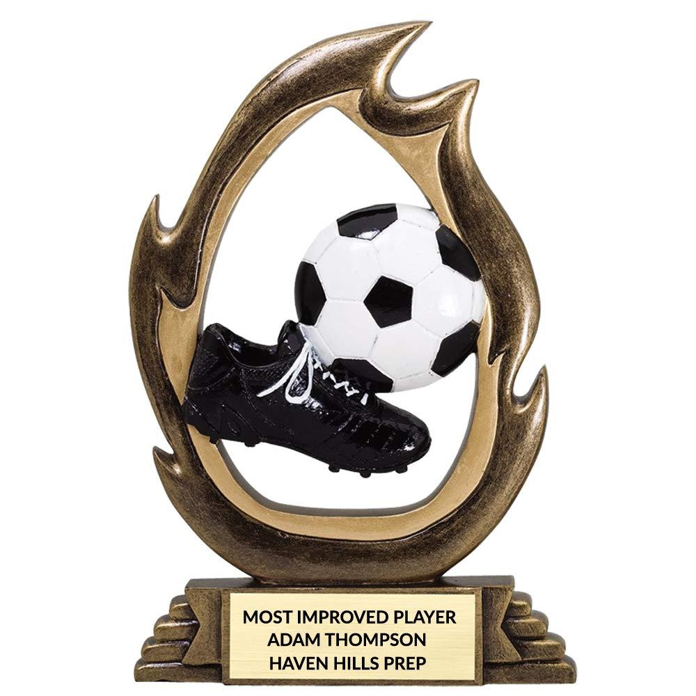 - HIGH QUALITY: This trophy includes a cut-out image surrounded by flames. Made of durable cast-resin, this bronze finished trophy is made to last. Dinn Trophy is a trusted family-owned trophy company that has been serving the trophy needs of consumers since 1956.