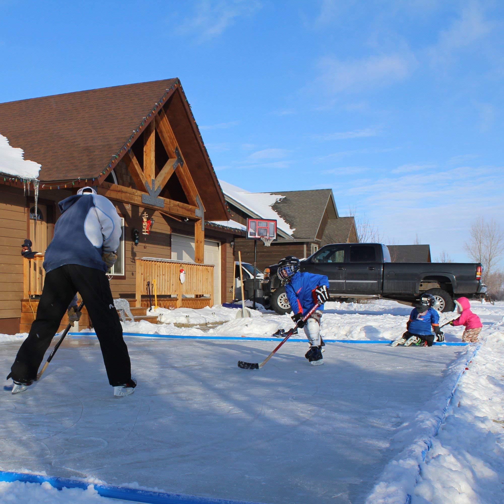 With over 70 thousand kits sold, this Canadian made kit is designed for the novice rink builder and with family skating in mind. Simply assemble the tubes and frame supports on relatively level ground or surface and secure the liner with our innovative coping. When temperatures drop below 0C, fill with water and once frozen, enjoy limitless hours of skating on your backyard rink.
