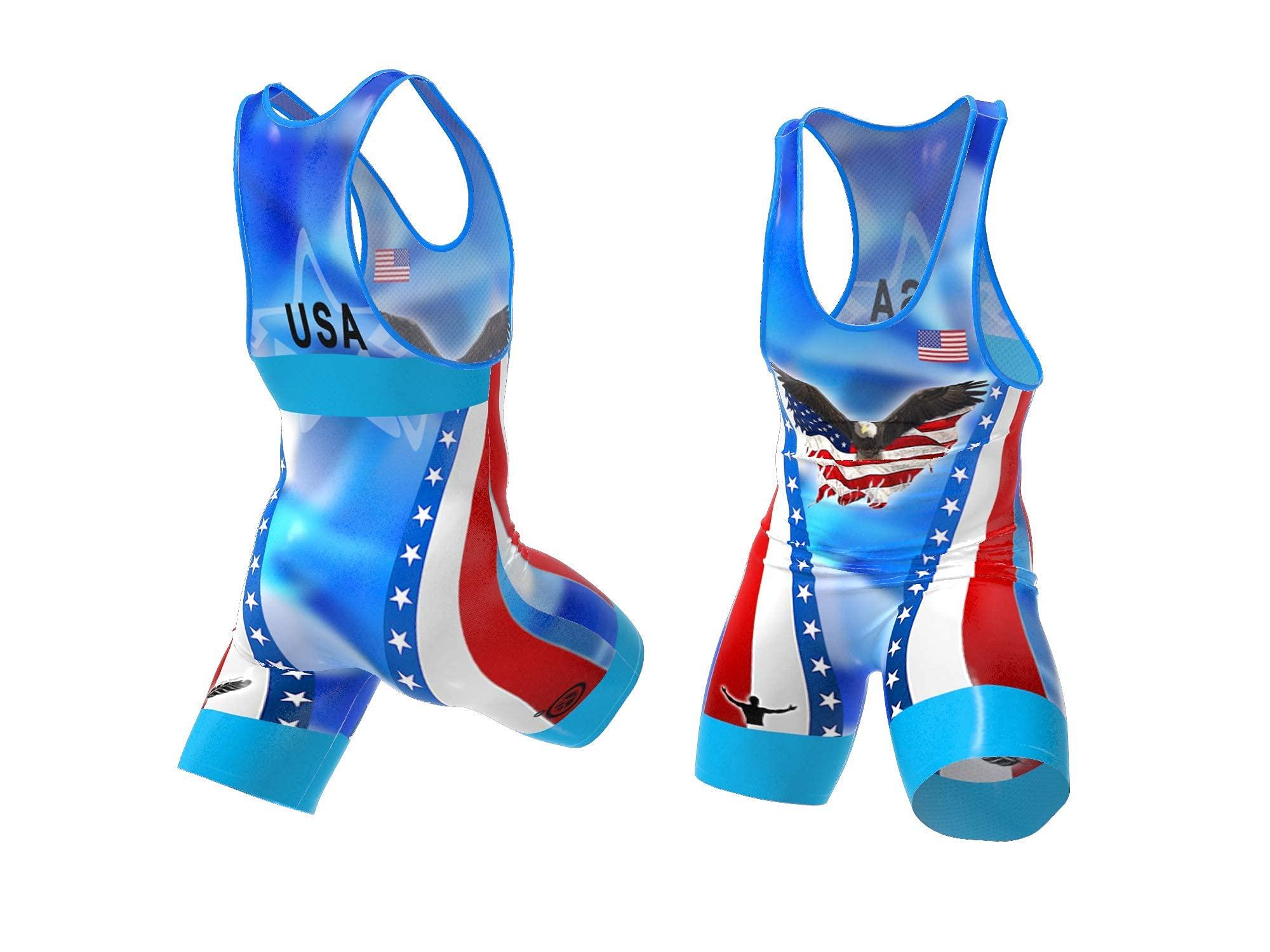 Feather Singlet Weigh-In Singlet 0.1 lbs, Wrestling Singlet, Lightest Singlet in The World (UWW Blue, YM)