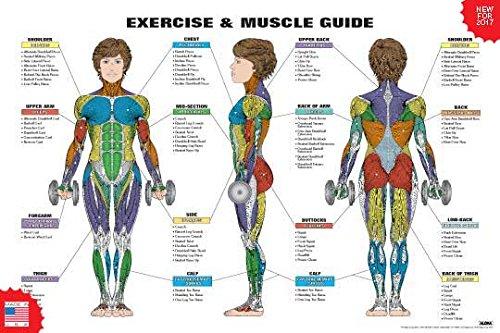 Brand New for 2017 This Revised Female Exercise and Muscle Guide is more detailed then the previous chart with more detailed illustrations offered in multi-color and a new Red Series. The exercise and muscle guide charts is 2' x 36" and laminated, very easy to read.