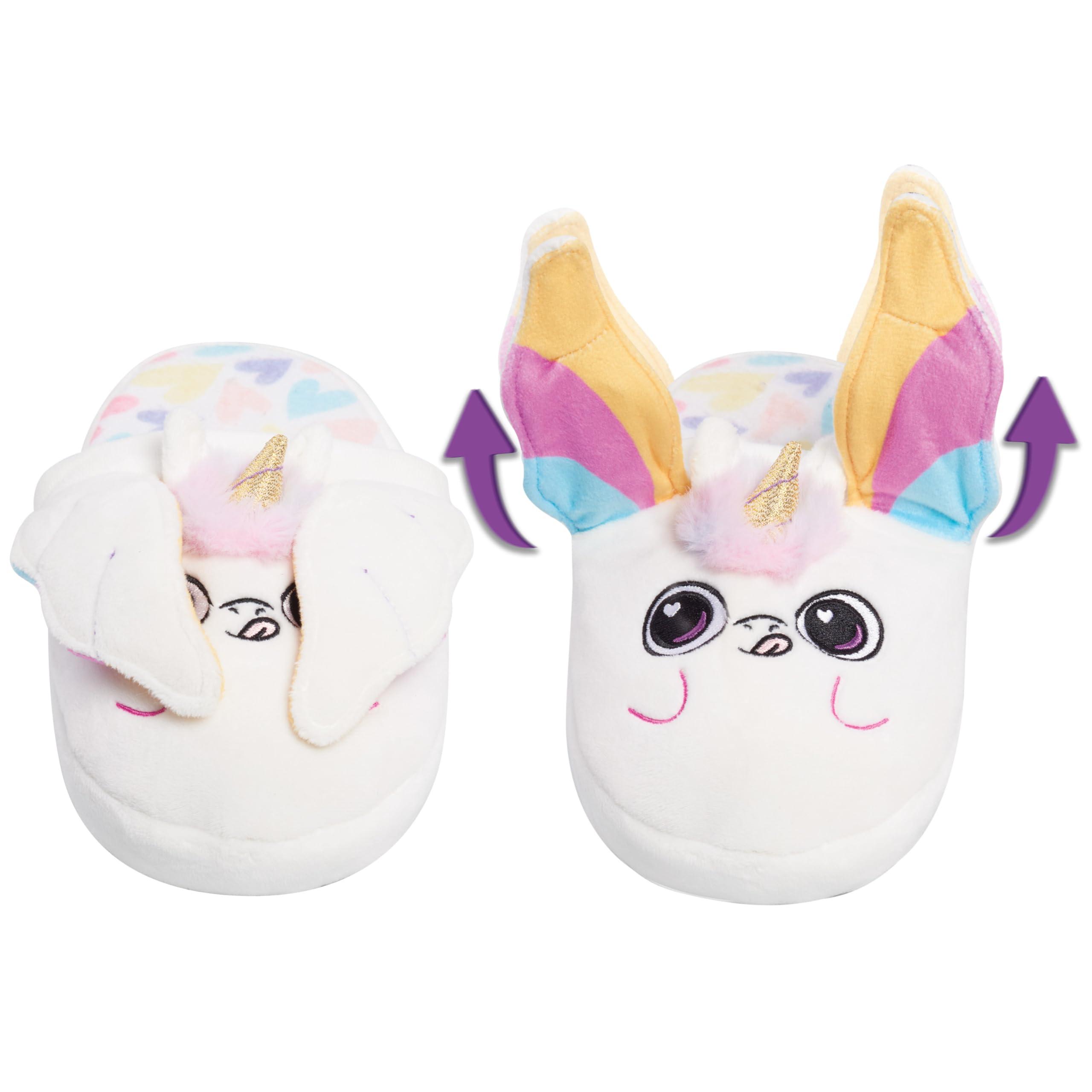 Get ready for some flippin fun with Flipeez the playful, step-activated slippers thatll make kids want to leave their shoes at the door. With each step, these super-cute and colorful slippers for kids reveal cuddly characters whose ears or arms pop up for a giggle-inducing surprise! Soft, fluffy, and incredibly comfy, plush Flipeez slippers provide warm hugs for little feet, making them perfect for slumber parties, travel, or just lounging around. Crafted with premium washable materials and a non-slip sole for play, these kid-powered, fun slippers are perfect for both boys and girls. Step into a world of imagination and motion with Flipeez where every step is a chance to play! Available in various sizes.