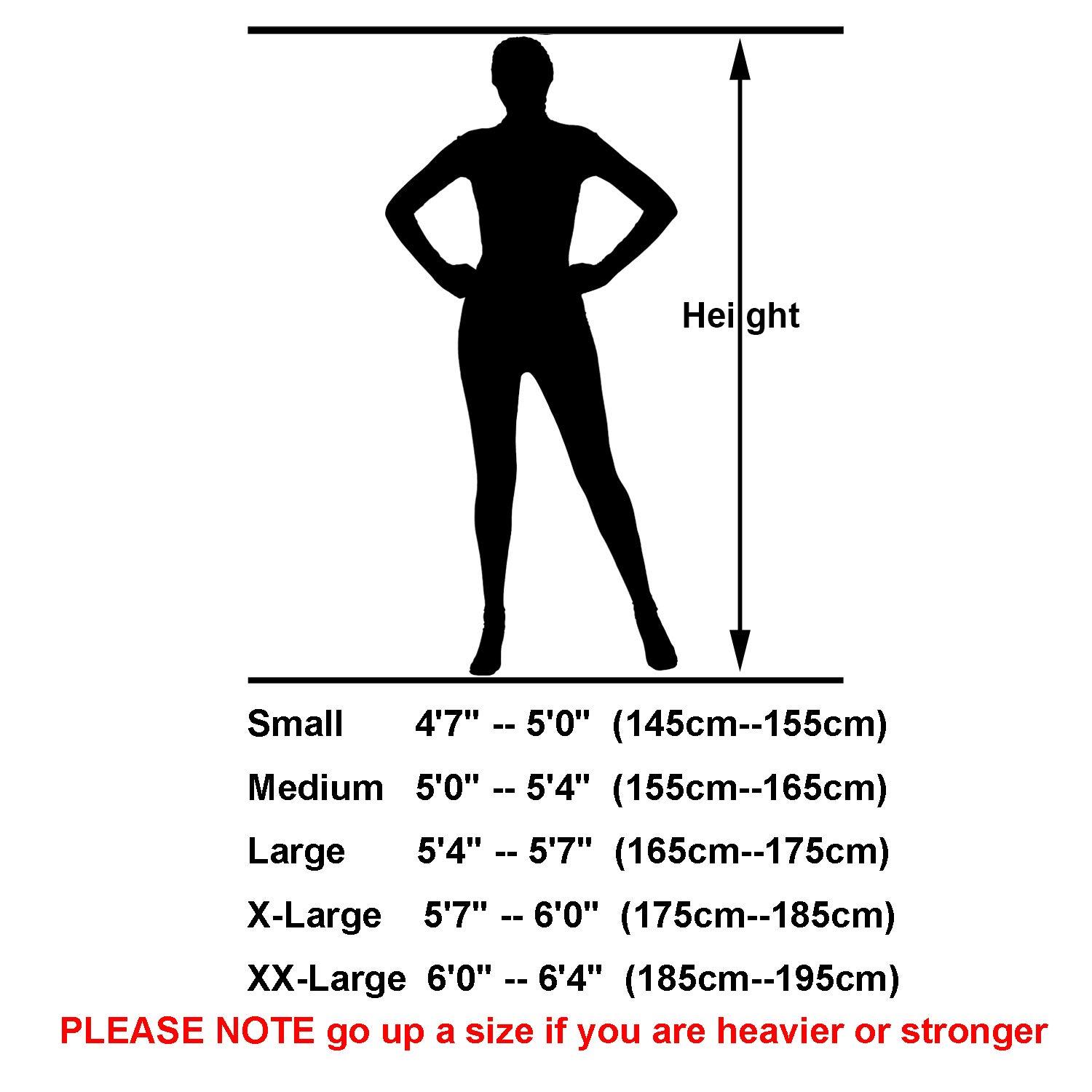 • & !!! !!! PLEASE NOTE go up one or more sizes if you are heavier or stronger. SIZE base on height (S: 4'7''-5'0''); (M: 5'0''-5'4''); (L: 5'4''-5'7''); (XL: 5'7''-6'0''); (XXL: 6'0''-6'4'')