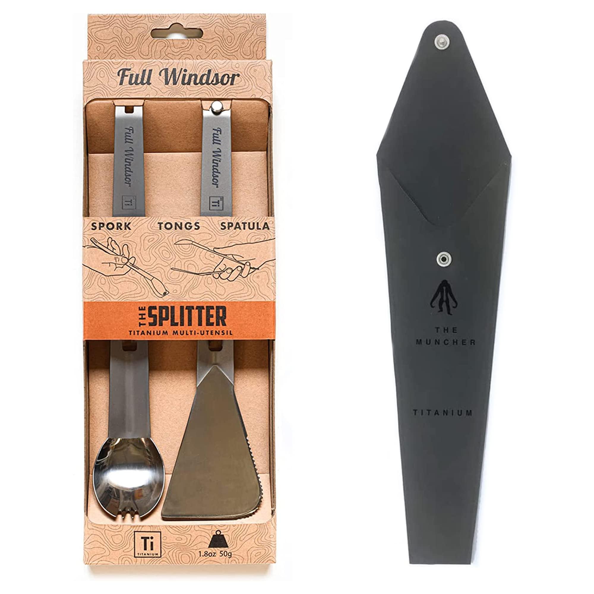 - AN AWESOME BUNDLE: Combining Our Splitter titanium multi-utensil titanium tongs, spork, and spatula set with a waterproof, reusable, and portable carrying pouch, this bundle is specifically tailored for those who love having the convenience of versatility, practicality, and multifunctionality on the go!