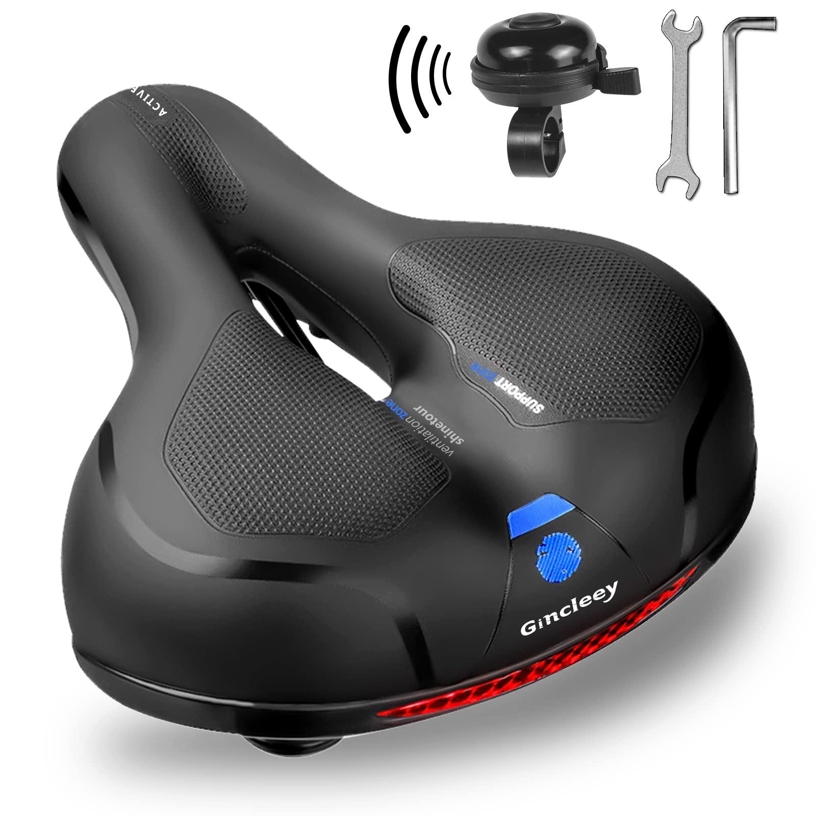 - Shock Absorption---Gincleey comfortable bike seat is padded by thicken widened high-density memory foam, with anti-shock rubber ball under the bicycle seat protects you from the sharpness among the road cracks, bumps and frost heaves. Durable, feel comfortable, good elastic and very soft, better protect the buttocks!