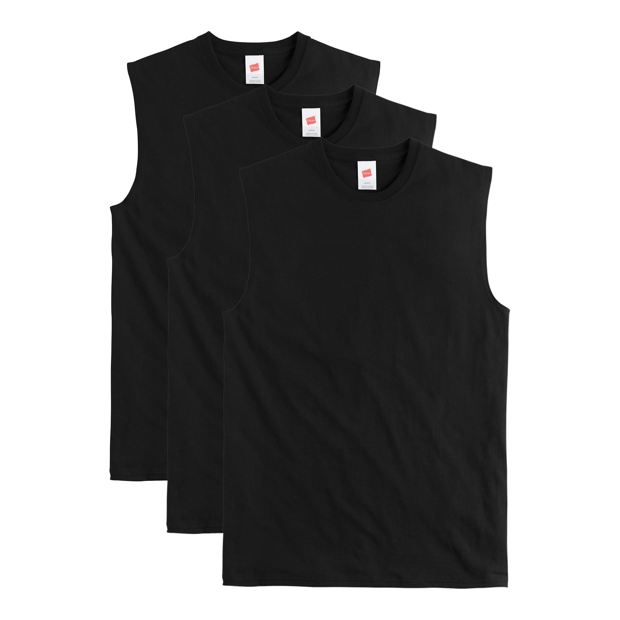 From workouts to lounging around the house, this versatile midweight muscle t-shirt design from the Hanes Essentials collection is your new go-to for everyday wear. Crafted from U.S.-grown cotton and finished with a thick ribbed collar and sturdy double-needle stitching, this classic men's tank is is a valuable layering piece that also works as a standout standalone top layer. Now available in a convenient pack of three classic men's muscle shirts - so you don't ever have to be without a clean Hanes tee.