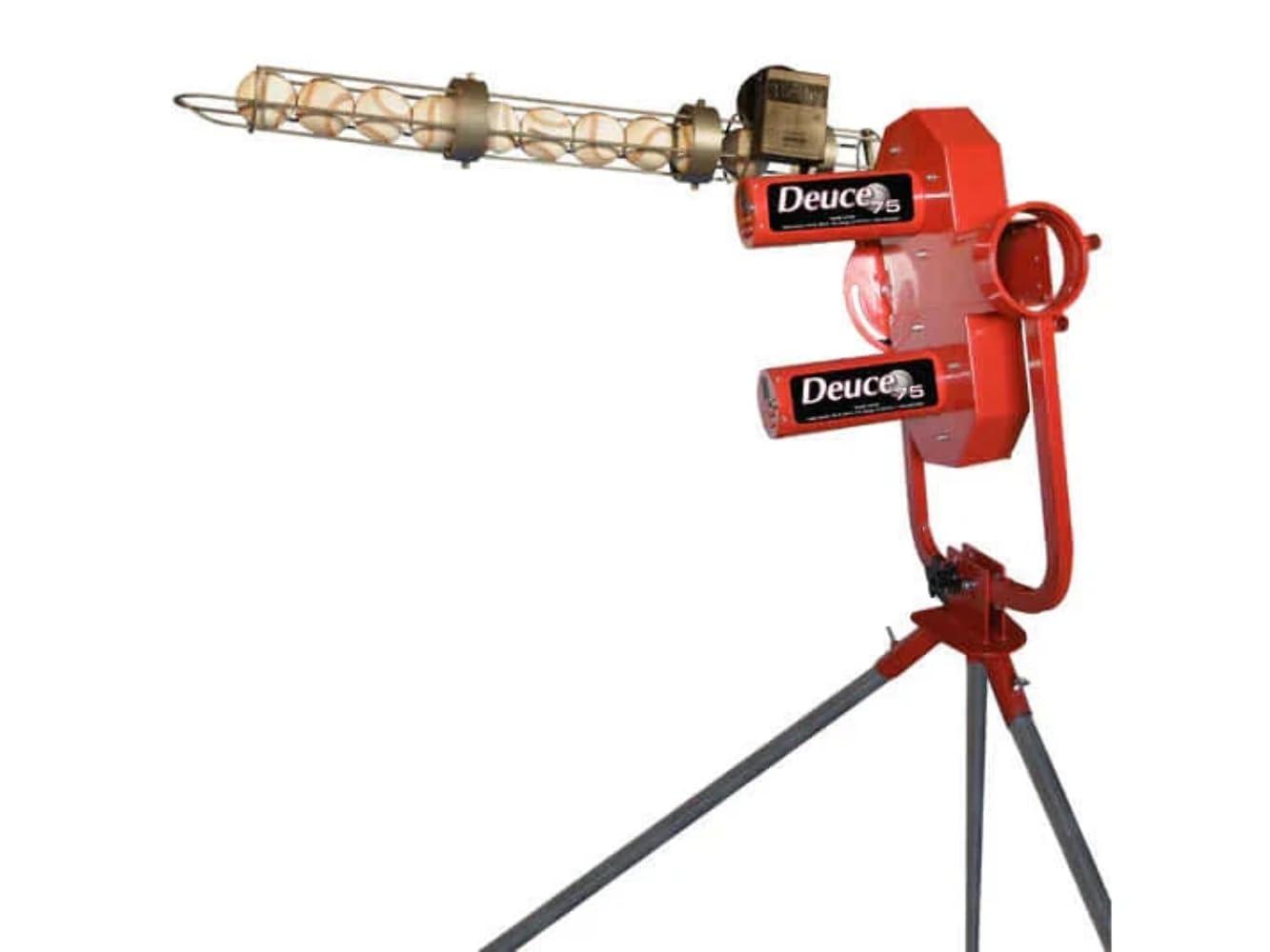 - Innovative Pivot Head Design: The Deuce 75s unique pivot head design provides unparalleled flexibility, enabling you to adjust the machine to pitch at any angle. Whether youre working on fastballs, curveballs, sliders, pop flies, or grounders, this feature lets you fine-tune your practice to match real-game scenarios.
