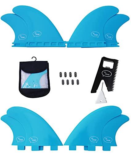 - INCLUDES EVERYTHING YOU NEED: 4 surfboard fins, wax comb / fin key / bottle opener, fin screws, and travel case.