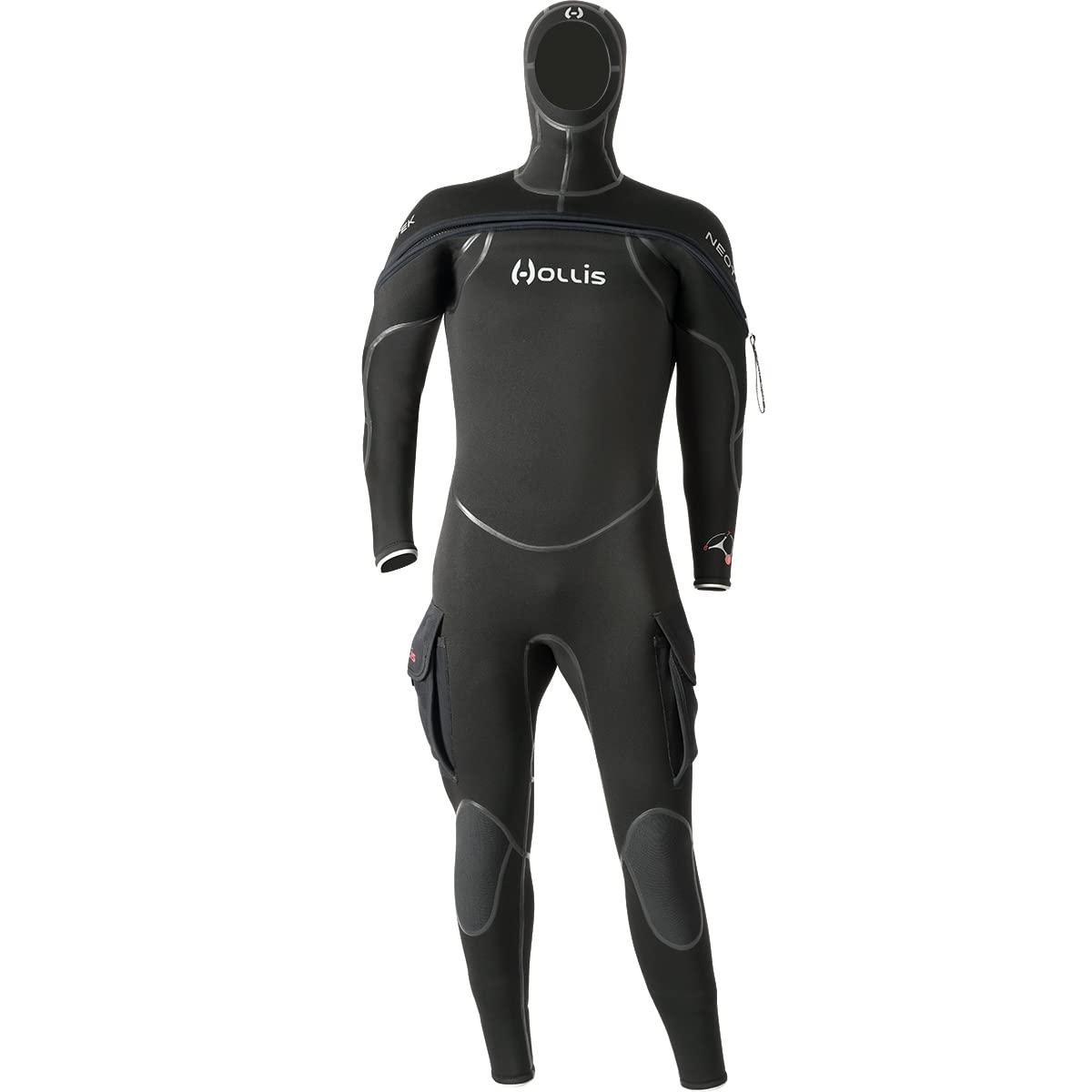 Enjoy the warmth of our new Neotek 8/7/6 cold water hooded semidry. Constructed from a compression resistant 8/7/6 mm neoprene and a Hollis exclusive "ThermaSkin" inner liner. Includes a front neckdam with revolutionary G-Lock horizontal front zipper for easy on/off and a tight barrier against water intrusion. Arms and legs are also sealed against leaks with an internal dam. All seams are double glued and butt joined with a blind stitch construction which is all covered by a unique liquid seam. Fitted with generous pockets on both the left and right thigh and comes in 9 different sizes.