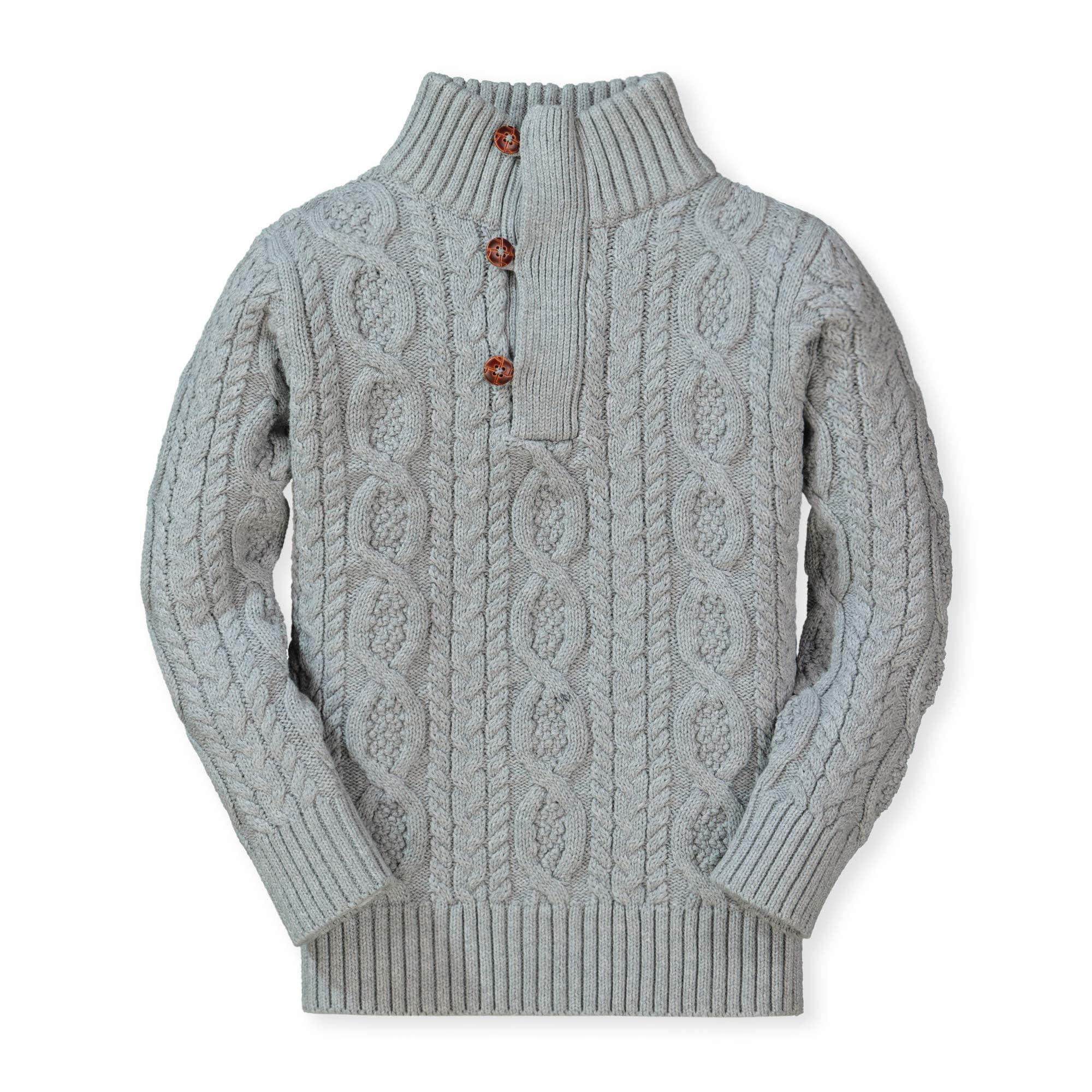- Luxuriously plush cables in our signature 100% organic cotton make this sweater a must have for cooler months. Featuring a ribbed knit shawl mock neck with faux leather button closures and fully adorned with a classic cable knit.