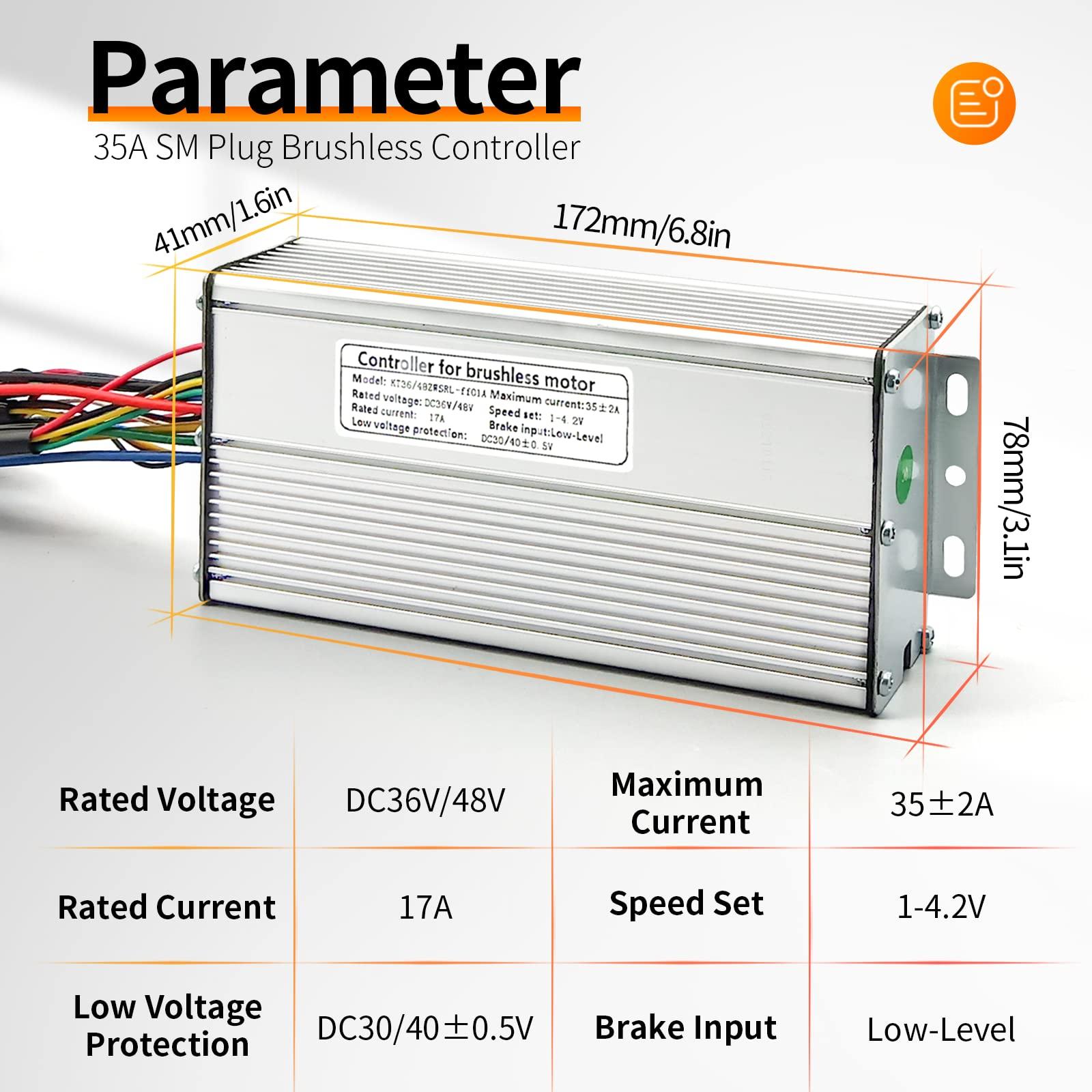 HUDAMZKY HUDAMZKY KT 48V 52V 30A/35A Ebike 1000W/1500W Hub Motor 12 Mosfet Brushless Controller for Electric Bike Motorbike Conversion Kit Compatible with KT LED LCD Display (35A SM Plug)