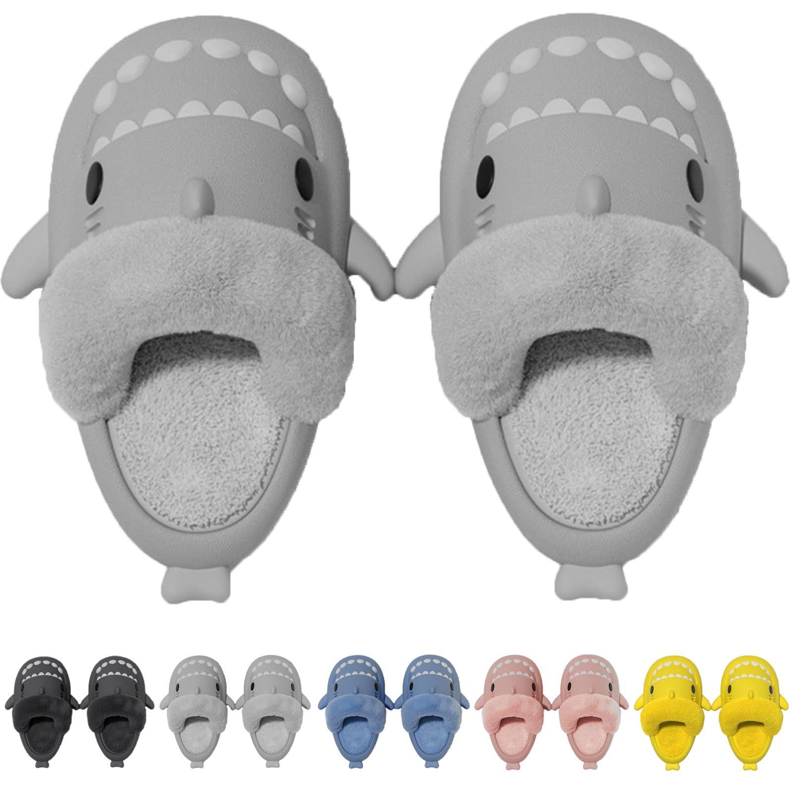 Jfxgjuv Jfxgjuv Sharklas Polares, Sharklas Originales, Sharky Chanclas De Invierno, Summer and Winter Shark Slides Detachable Warm Fuzzy Slippers (Grey,1-2 Big Kid)