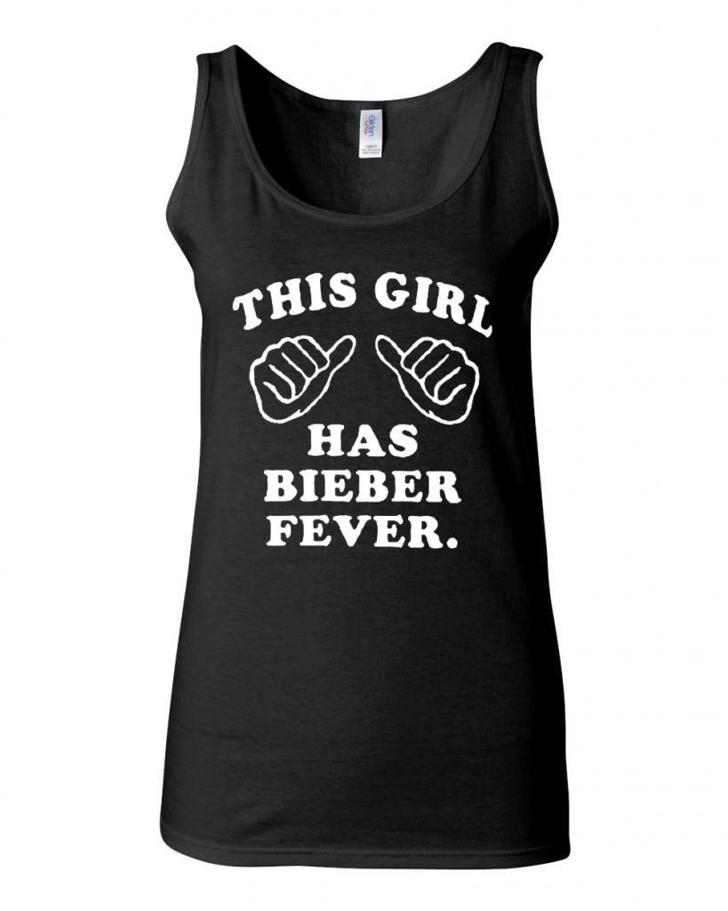 Junior This Girl Has Bieber Fever Graphic Novelty Tank Top (Small, Black)