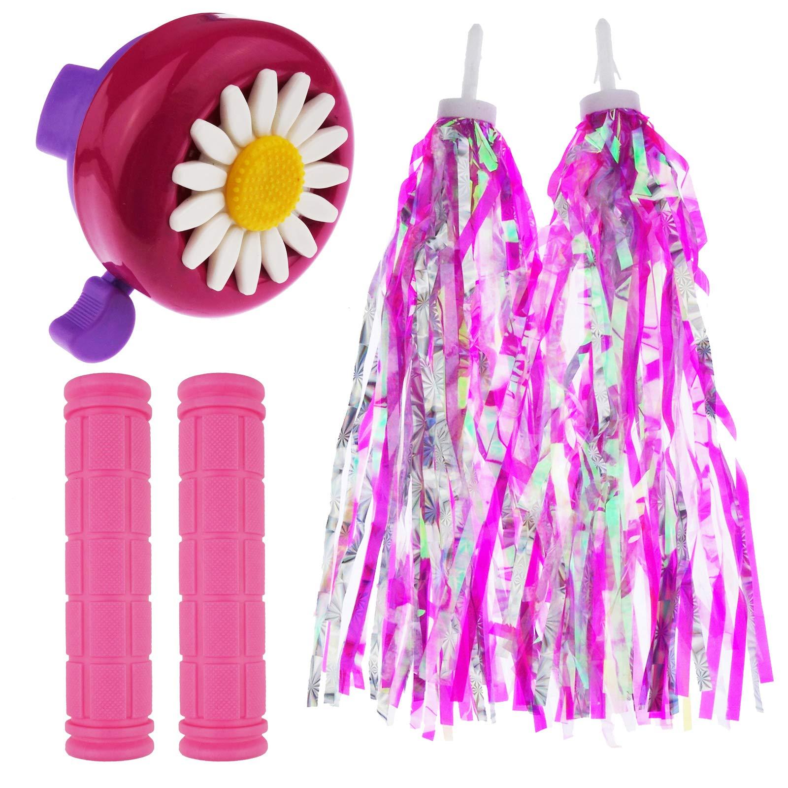 Kasteco Kasteco 2 Pack Bicycle Bike Handlebar Scooter Streamers,1 Pack Bicycle Bell and Bicycle Handle Bar Grips, (Rose)