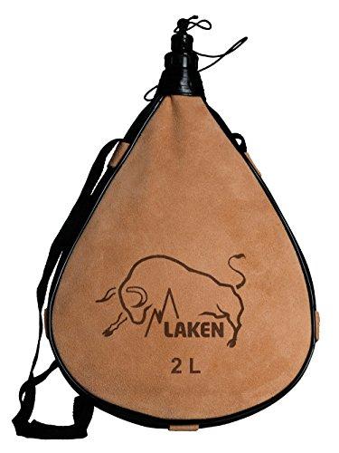 Laken Spanish Bota Bag Leather Canteen Pouch for Wine and Water - Wine Skin Bag with Strap for Travel, Camping, Hiking | Straight Shape - 2 Liter