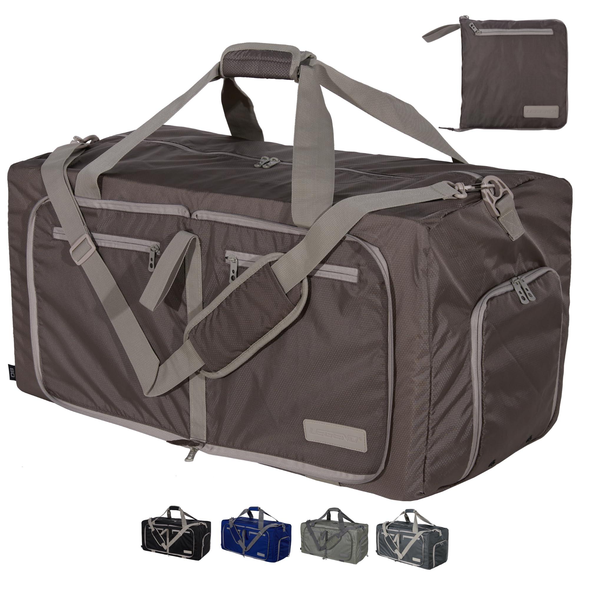 - SPACIOUS STORAGE FOR ALL YOUR ESSENTIALS: Choose from 80L (28"x23"x14"), 60L (24"x14"x10"), or 40L (21"x13"x9") for the perfect fit. This collapsible duffle bag travel features smartly placed pockets to keep clothing, personal items, and travel essentials organized.
