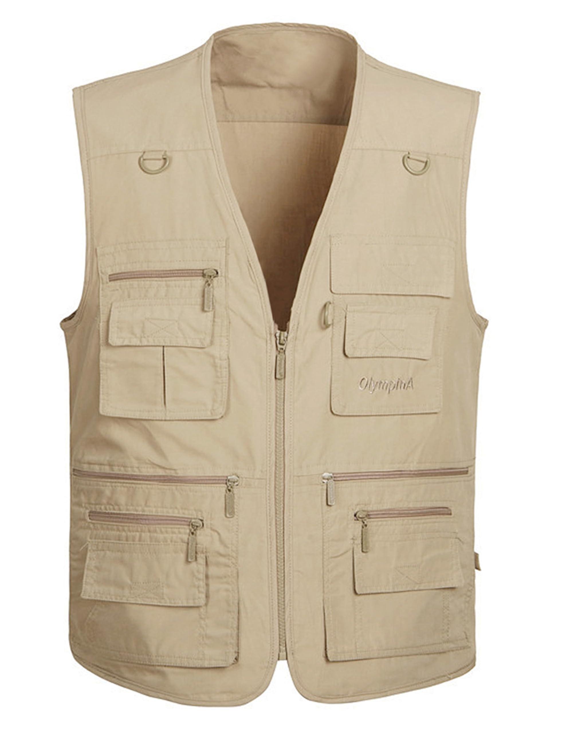 - Features: Zipper front, V neck, 14 functional pockets and 3 "D" rings, serves for travel, volunteer, hiking or just for very tasteful casual wear
