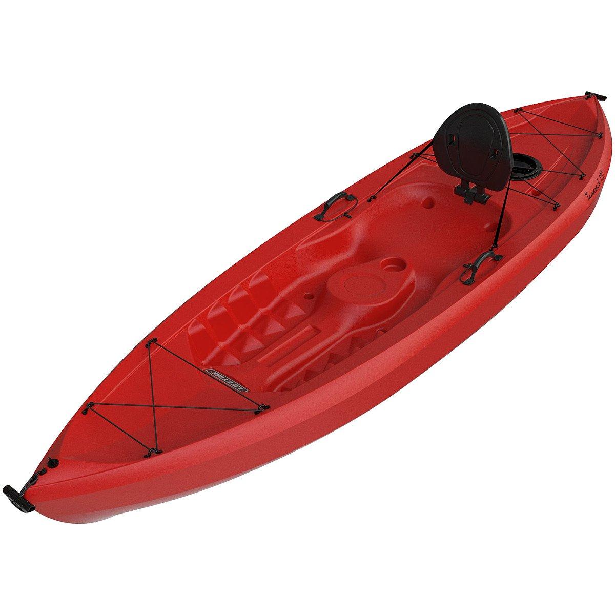 The Lifetime Tamarack 10 ft. Kayak is a sit-on-top kayak that has a comfortable backrest for your long paddling adventures. Designed for extreme safety and stability, the Tamarack has a stable flat bottom with deep tracking channels and stability chine rails. The kayak is constructed of blow-molded high-density polyethylene (HDPE) making it durable, UV-protected, and impact resistant. The lightweight, 50 pound design and front and rear carry handles make it easy to transport to and from the waterfront. With a storage hatch, paddlekeeper, and multiple footrest positions, this kayak has plenty of extras to enhance your paddling experience.