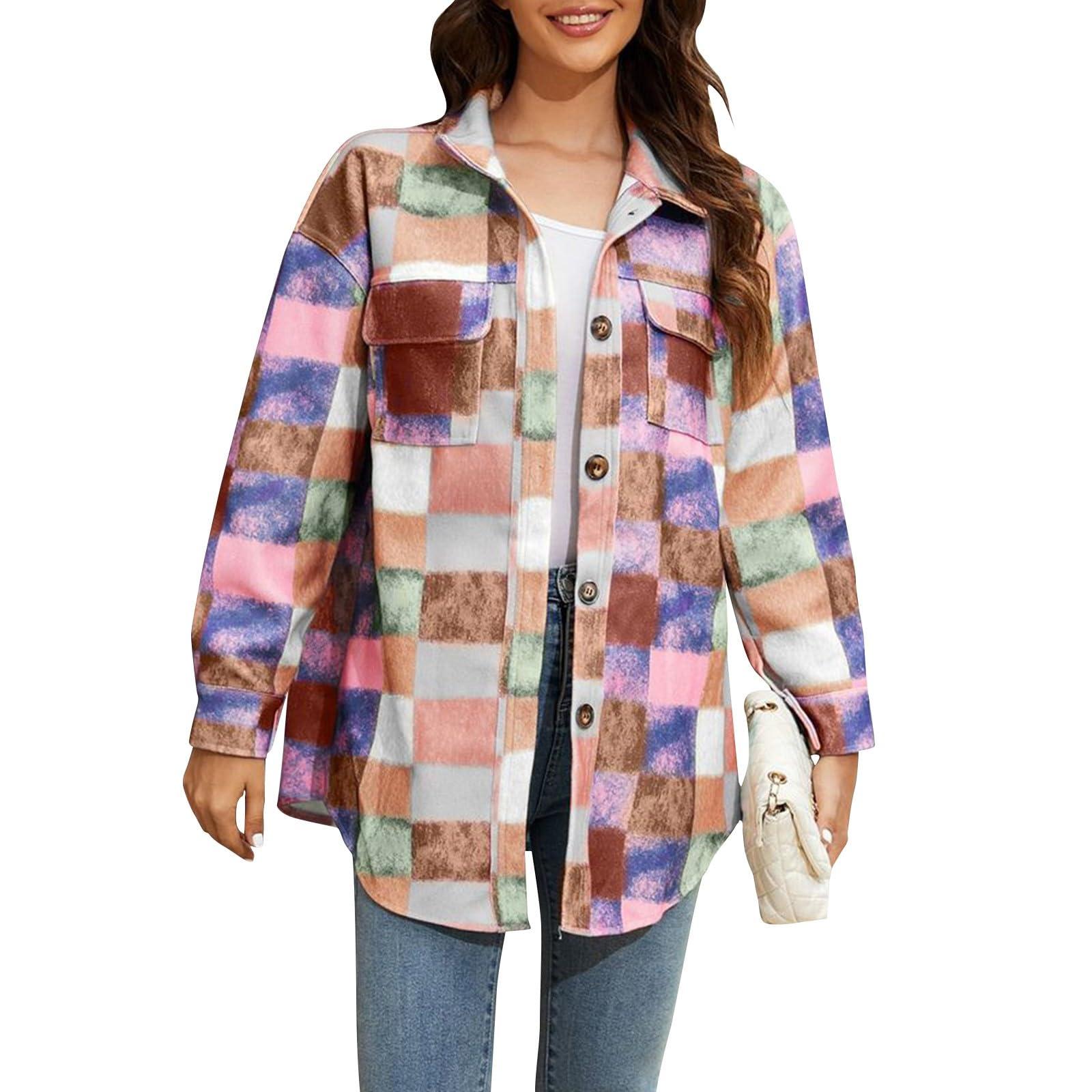 - FEATURESWomens fashion buffalo plaid shirt, long sleeve button down shirt blouse, fashion flannel blouse top with one side pocket, cuff button, 2024 fall fashion shirts for womens, button front, long sleeves with button closure cuffs, drop shoulders oversized fit plaid tops flannel jackets long sleeve shirts, plaid flannel jackets for women, color block shirt jackets for women, lapel collar coat outerwear jackets for women, oversized shacket with pockets,winter coat for women