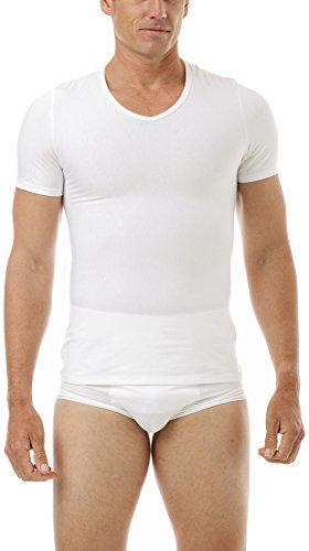 With a single layer of MagiCotton, your Gynecomastia V-neck T-shirt works wonderfully in flattening your chest and tummy while providing your back with support and improving your posture. From the Core fibers of 32% spandex and 22% nylon wrapped with 46% pure cotton, this fabric stretches four ways, providing you with the best fit and compression in total comfort. The compression is focused only in the chest area. The mid-section is relaxed and filled with 100% combed cotton so you only feel the compression where you need it. An amazing level of compression with the feel of cotton and in a single layer of fabric. Made in the USA by Manshape.
