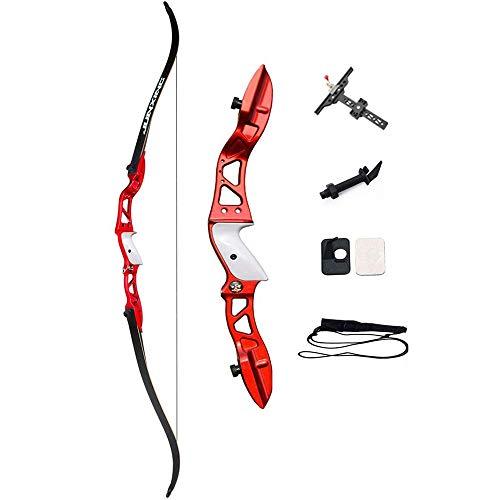 Bow Details Item name: Takedown Recurve Bow Draw Weight:24/26/28/30/32/34/36lbs Bow length:66inch String length:162cm Draw Length:32inch Bow to string:21cm Bow Riser Material: Aluminum Alloy Color:Black, Red, Blue Weight:2.8lbs(1.27kg) Carbon arrow details Item Name: Carbon Arrow Material: carbon fiber Arrow body length: 30 inches Total length: 31.5 inches Arrow weight: 34g Arrowhead Weight: 100 Grains Outter diameter: 7.6mm Inner diameter: 6.2 mm Spine: 500 Feather length: 2 inches Package Include: Only bow(Not include arrows)1 x Riser 2 x Limbs 1 x String 1 x Sight 1 x Arrow restBow set1 x Riser 2 x Limbs 1 x String 1 x Sight 1 x Arrow rest6 x carbon arrow