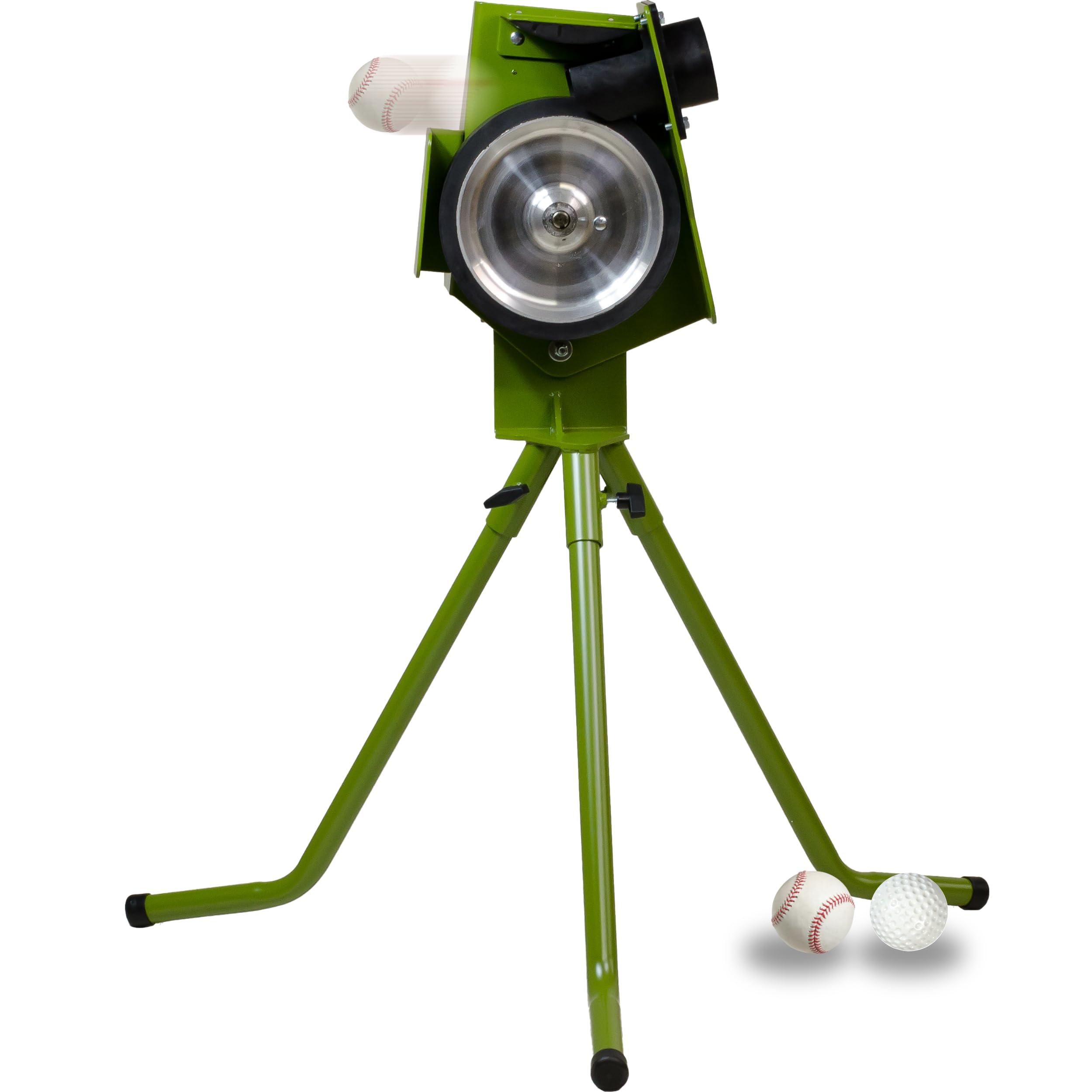 - BASEBALL AND SOFTBALL THROWING MACHINE: Our single wheel baseball and softball pitching machine offers automatic pitching, ensuring consistent and accurate throws for effective training sessions for both youth and adult players, and features 2 chutes to alternate between baseballs and softballs, making this an excellent sports training accessory for athletes and coaching staff
