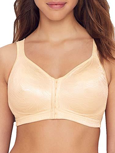 Looking for a bra that can give your posture a little boost? Look no further than this 18 Hour front close wireless bra from the experts at Playtex. Remarkably engineered, this wirefree bra with pretty jacquard cups is designed with the innovative PowerSupportX bra frame that provides back support that may help improve your posture. Additionally, Magic Rings technology in the wirefree cups help provide side support and lift. Crisscross back panels with mesh insets provide side and back smoothing for bulge management. This comfortable all-day bra is designed with the 4-way TruSUPPORT system that provides higher sides for bulge control, fuller cups for natural shaping, wider straps for all-day ease, and a smoother back for enhanced stability. You'll also appreciate the front closure that makes getting dressed a breeze and Comfort Cushion straps for shoulder relief.