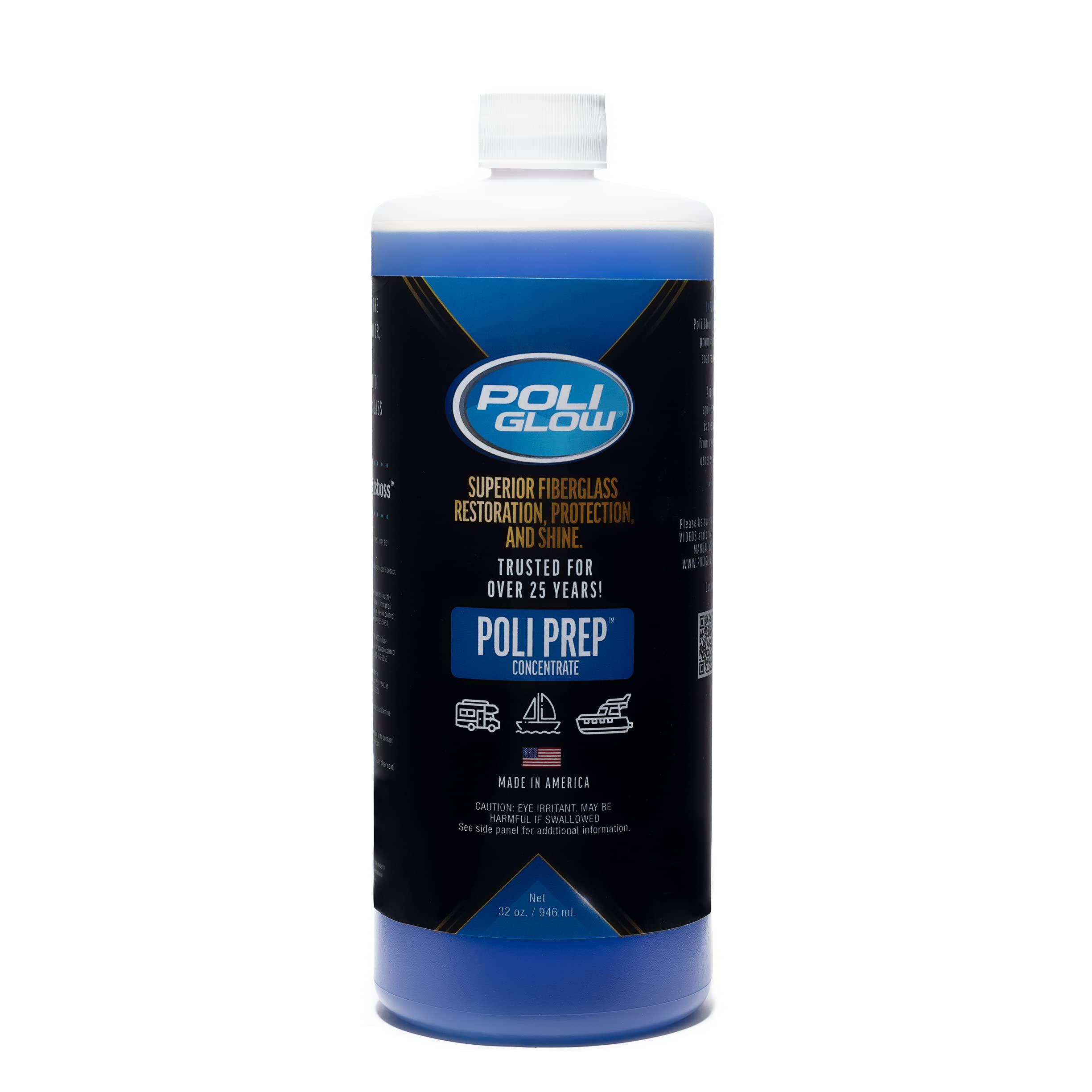 - THE FIRST STEP TO RESTORED GLORY - Poli Prep kicks off your boat or RV's transformation journey. It doesn't just clean - it uncovers surface colors without damaging the fiberglass or vinyl decals, creating the perfect canvas for Poli Glow application. PACKAGE INCLUDES (1) 32-oz bottle of concentrated Poli Prep. Dilute 3:1 with water, spray on and scrub, then watch years of oxidation and grime disappear. For best results, follow up with Poli Glow to achieve that long-lasting, showroom shine.