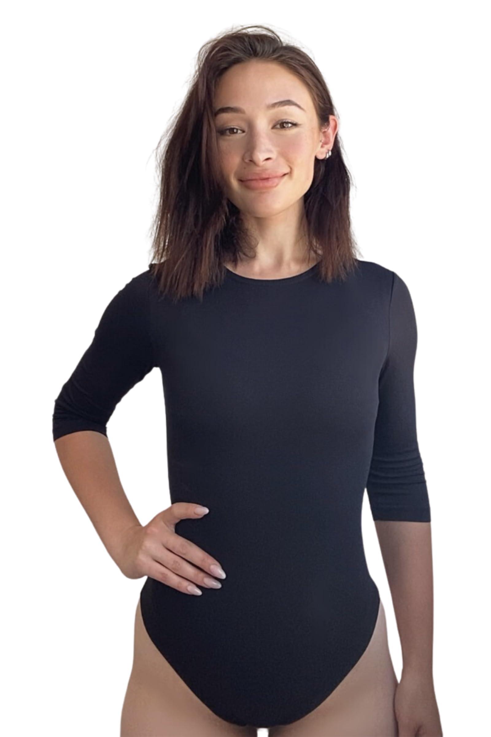 - Reliable Base to Look Your Best - This close fitted quarter sleeve leotard shirt provides a seamless tucked-in appearance with clean lines under your dress, skirt or leggings The modesty shell that stays put because you've snapped it into place! Will complement everything from your dressy LBD and your comfy sweaters